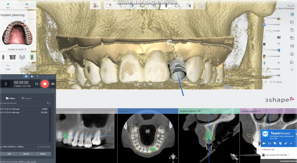 โดยปกติการผ่าตัดฝังรากเทียมใช้เวลาประมาณ 2.30 ชม. ในการทำต่อขากรรไกร โดยเราอาจทำทั้งขากรรไกรบน หรือ ขากรรไกรล่าง ในวันเดียวกัน เริ่มต้นด้วยการตรวจในช่องปากอย่างละเอียด ทั้งโครงสร้างของใบหน้า ฟันธรรมชาติที่เหลืออยู่ สภาพช่องปากและกระดูกขากรรไกร หลังจากนั้นจะส่งถ่าย X-ray CT ได้รูปร่างฟันและกระดูกขากรรไกรในภาพ 3 มิติ ซึ่งข้อมูลเหล่านี้จะจำเป็นสำหรับการผ่าตัดฝังรากเทียม เพราะสามารถบ่งบอกถึงตำแหน่งโพรงอากาศข้างจมูก เส้นประสาทต่างๆ เพื่อที่จะกำหนดตำแหน่งรากเทียม หลังจากนั้น ข้อมูลจากคอมพิวเตอร์ จะสามารถกำหนดตำแหน่งของรากเทียม เพื่อให้ได้การวางแผนที่ถูกต้อง และได้ Surgical Guide ในการผ่าตัด