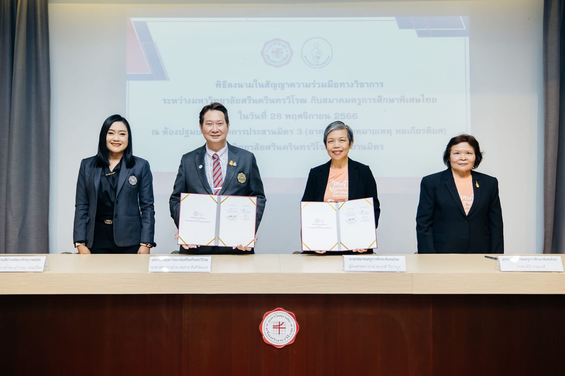 มหาวิทยาลัยศรีนครินทรวิโรฒ (มศว) จัดพิธีลงนามความร่วมมือทางวิชาการ โดยมี รองศาสตราจารย์ ดร.สมชาย สันติวัฒนกุล อธิการบดี มศว ลงนามความร่วมมือทางวิชาการกับ ผู้ช่วยศาสตราจารย์ ดร.ยุวดี วิริยางกูร นายกสมาคมครูการศึกษาพิเศษไทย เมื่อวันที่ 28 พฤศจิกายน 2566 เวลา 10.00 12.00 น. ณ มศว ประสานมิตร กทม. โดยมีความมุ่งหวังร่วมกันว่าจะสร้างเครือข่ายการศึกษาและพัฒนายกระดับ ครูวิเศษสอนเด็กพิเศษ ให้เกิดประโยชน์แก่บุคลากรทางการศึกษาอย่างยั่งยืน