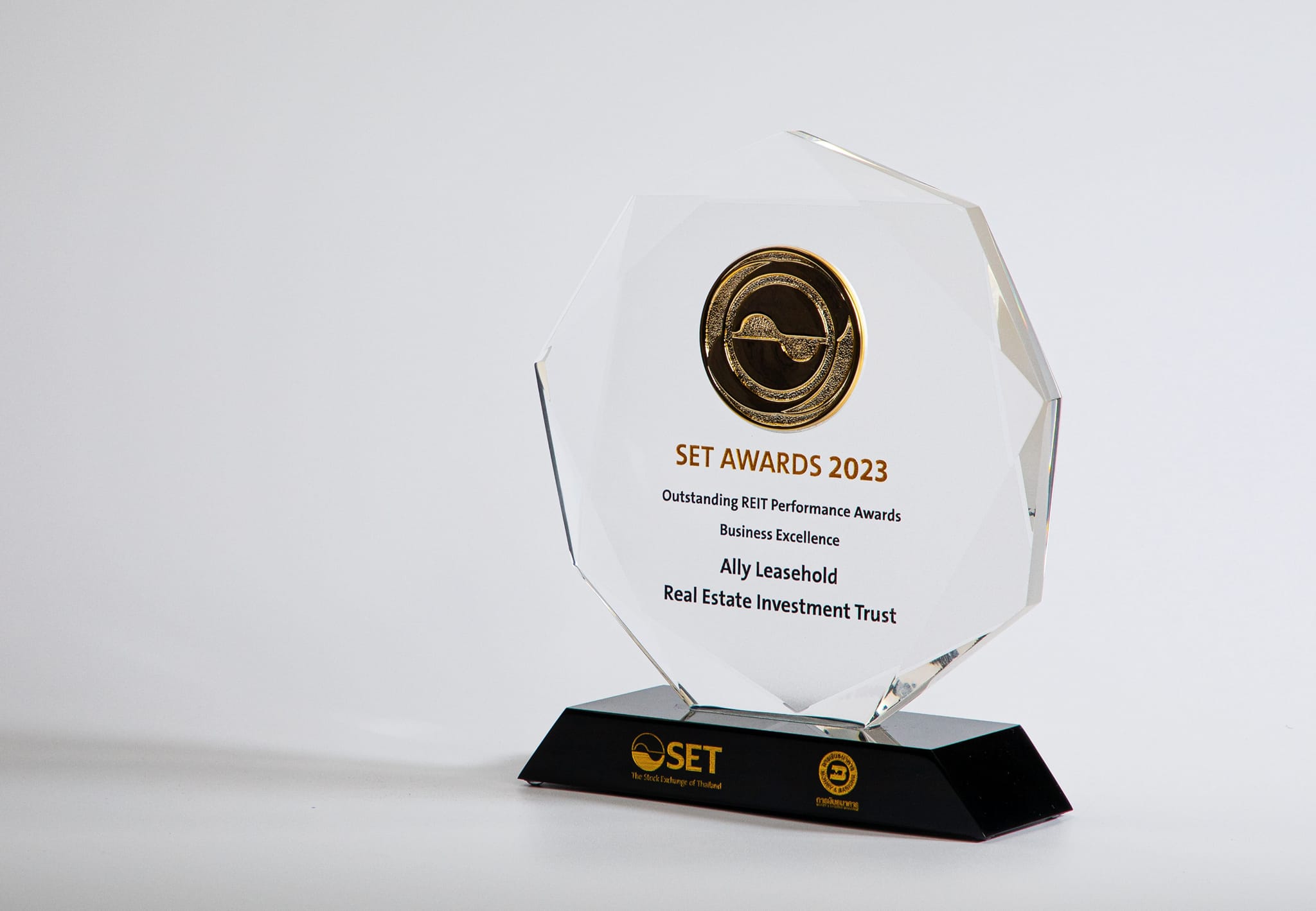 ตอกย้ำความสำเร็จด้วยอีกก้าวสำคัญของ ALLY REIT หรือ ทรัสต์เพื่อการลงทุนในสิทธิการเช่าอสังหาริมทรัพย์ อัลไล คว้ารางวัล Business Excellence สาขา Best REIT Performance Awards ในพิธีประกาศผลและมอบรางวัล SET AWARDS ประจำปี 2566 เมื่อวันที่ 21 พฤศจิกายน 2566 ที่ผ่านมา จัดขึ้นโดยตลาดหลักทรัพย์แห่งประเทศไทย ร่วมกับวารสารการเงินธนาคาร ซึ่งจัดขึ้นมาอย่างต่อเนื่อง โดยในปีนี้ครบรอบปีที่ 20 SET Awards เพื่อยกระดับมาตรฐานคุณภาพ และความเป็นสุดยอดในตลาดทุนไทย