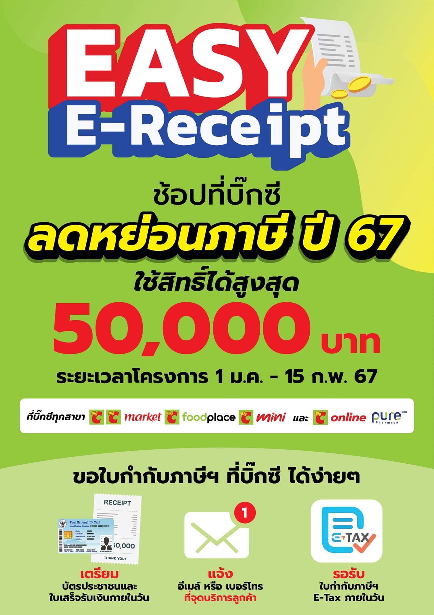 เริ่มแล้ว! โครงการ "Easy E-Receipt" ลดหย่อนภาษีสูงสุด 50,000 บาท ช้อปทุกชิ้นที่บิ๊กซี ทุกสาขาทั่วประเทศ ตั้งแต่วันที่ 1 มกราคม ถึง 15 กุมภาพันธ์ 2567