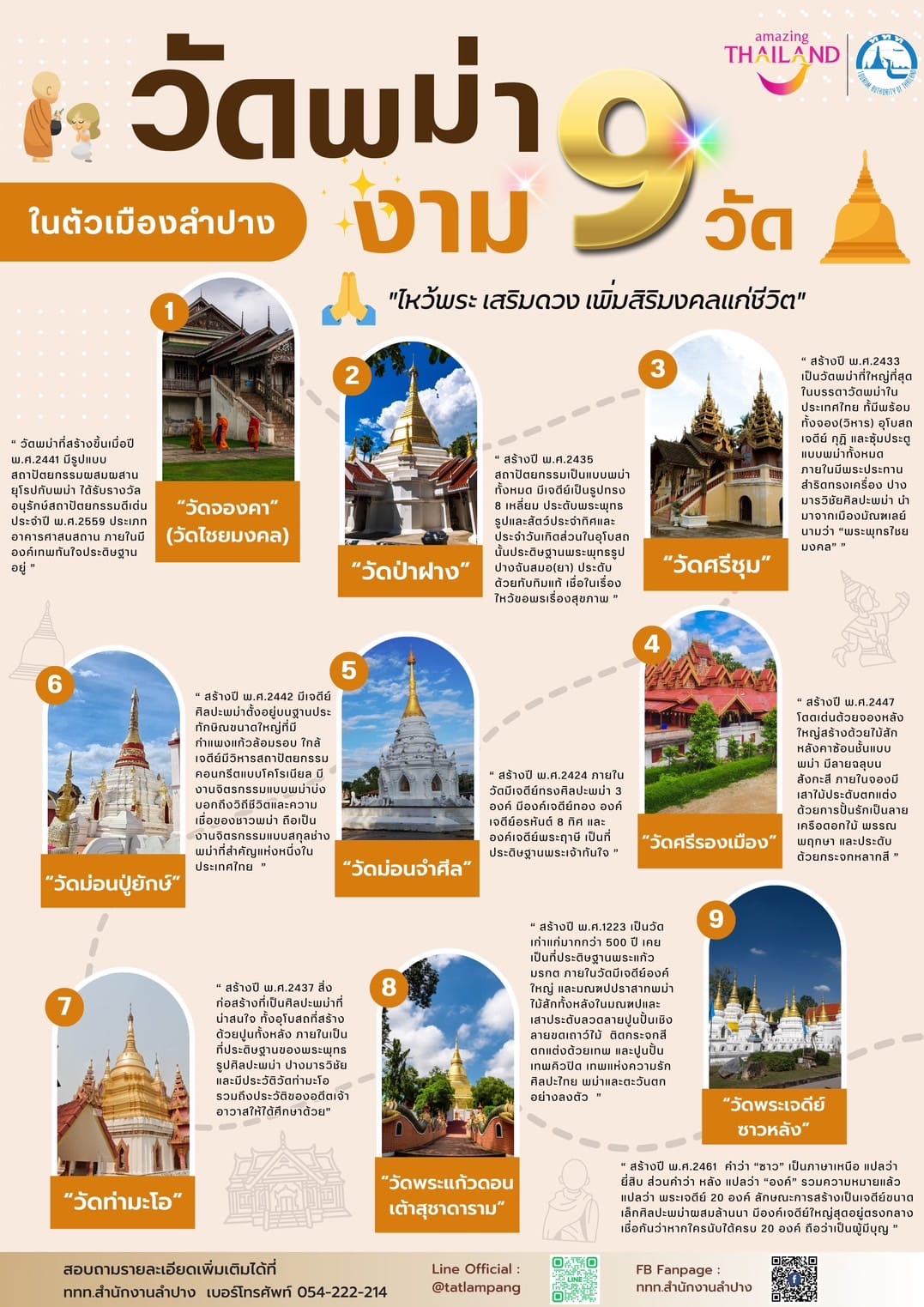 นอกจากนี้ ททท.สำนักงานลำปางยังได้จัดทำเส้นทางแนะนำเที่ยว 9 วัดพม่างาม สำหรับผู้มาร่วมงานในครั้งนี้ด้วย