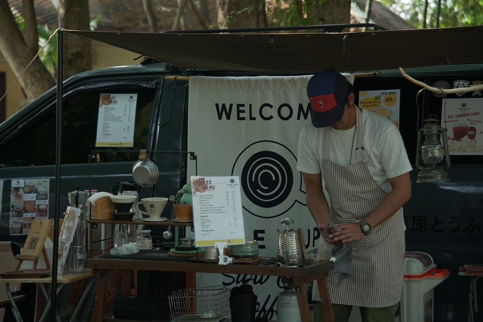 โซนออกบูธ (ร้านกาแฟ) เบเกอรี่ อาหารและเครื่องดื่ม : ผู้ประกอบการเข้าร่วมกิจกรรม ประมาณไม่ต่ำกว่า 40 ร้าน ประกอบด้วย ร้านกาแฟ (Speed Bar, Slow Bar) ร้านเบเกอรี่ ชื่อดังของฉะเชิงเทราและพื้นที่ใกล้เคียง ร้านจำหน่ายอุปกรณ์กาแฟ ผู้ประกอบการ Camping และอื่น ๆ มีการนำรถ Camping มาจัดแสดงสร้างบรรยากาศภายในบริเวณงาน โดยขอความร่วมมือผู้ประกอบการที่มาออกร้านใช้ภาชนะบรรจุอาหารและเครื่องดื่มที่เป็นมิตรต่อสิ่งแวดล้อมและร้านค้าจะมีการสร้างสรรค์เมนู Signature โดยนำวัตถุดิบท้องถิ่นจังหวัดฉะเชิงเทรามาเป็นส่วนผสม อาทิ มะพร้าวน้ำหอม มะม่วง น้ำตาลโตนด ซึ่งสร้างสรรค์ขึ้นมาเป็นพิเศษ และมีจำหน่ายเฉพาะภายในงานนี้เท่านั้น
