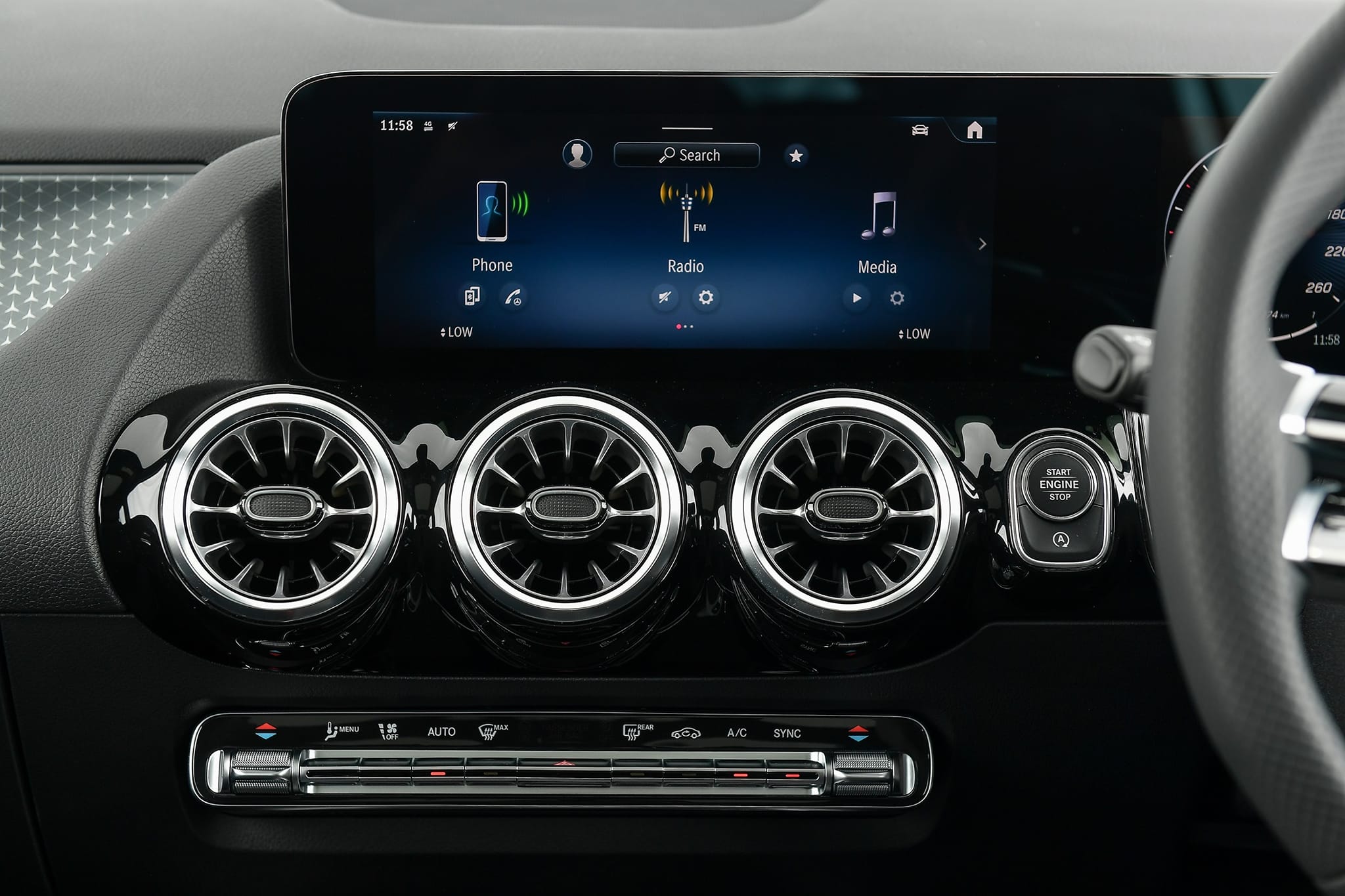 GLA 200 AMG Dynamic พร้อมเชื่อมต่อความบันเทิงมาสู่ห้องโดยสารอย่างไร้รอยต่อด้วยฟังก์ชั่นเชื่อมต่อโทรศัพท์มือถือทั้งระบบปฏิบัติการ iOS และ Android (Apple Carplay & Android Auto) และระบบปฏิบัติการมัลติมีเดียใหม่ล่าสุดแบบ MBUX7 ที่มีระบบ AI ช่วยประเมินพฤติกรรมการใช้งานของผู้ขับขี่อย่างอัจฉริยะ รองรับการสั่งซื้อแอปพลิเคชั่นสำหรับรายงานสภาพการจราจรแบบออนไลน์ Live Traffic Information ติดตั้งอุปกรณ์สื่อสารด้วยสัญญาณ LTE สำหรับบริการ Mercedes me connect ที่จะเปิดประตูสู่ฟังก์ชั่นระดับชั้นนำมากมาย ทั้งยังมีการติดตั้งไฟเรืองแสงล้อมรอบห้องโดยสาร (Ambient lighting) สามารถปรับได้กว่า 64 เฉด ช่วยเพิ่มความบันเทิงและความรื่นรมย์ขณะขับขี่และโดยสารได้ในทุกช่วงเวลา