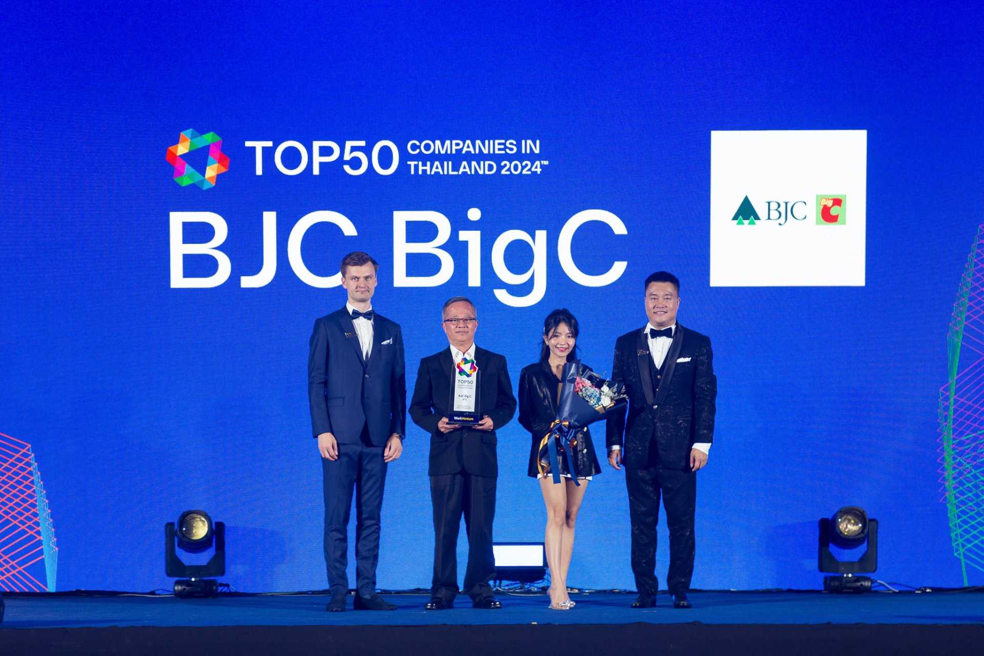 กลุ่มบีเจซี บิ๊กซี โดย คุณธีระ วีรธรรมสาธิต ประธานเจ้าหน้าที่ฝ่ายทรัพยากรบุคคลกลุ่มบริษัท เป็นตัวแทนรับรางวัล "Top50 Companies in Thailand 2024" หรือ 50 องค์กรที่คนรุ่นใหม่อยากทำงานด้วยมากที่สุด ประจำปี 2567
