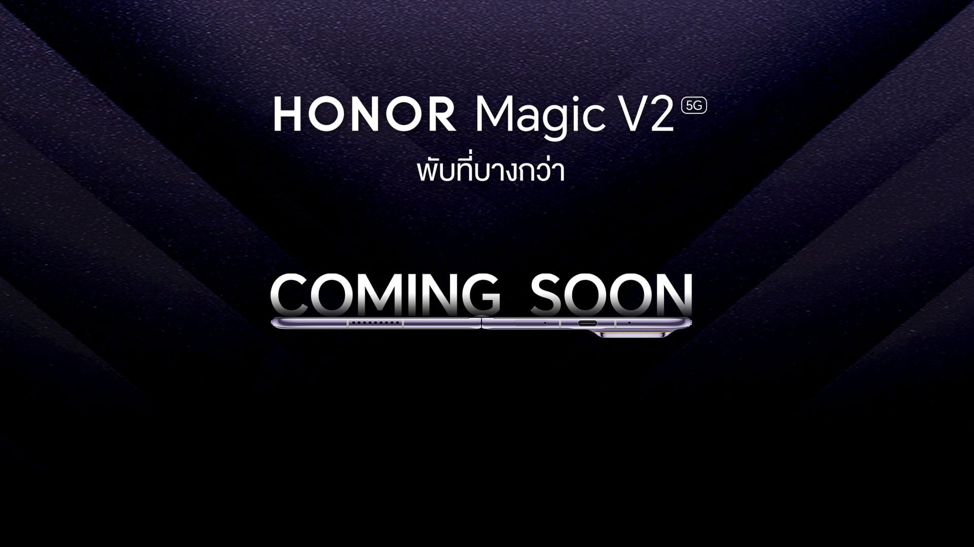 HONOR Magic V2 โทรศัพท์มือถือจอพับระดับเรือธงรุ่นล่าสุดจาก HONOR โดยเป็นสมาร์ตโฟนพับได้ที่มียอดขายเป็นอันดับ 1 ในประเทศจีน ปี 2023 เน้นจับกลุ่มคนทำงานและกลุ่มคนที่ชื่นชอบเทคโนโลยี ที่มาพร้อมการใช้งานทรงพลัง ครบครันในทุกด้าน พร้อมนำเสนอนวัตกรรมและเทคโนโลยีที่ทันสมัยที่ทาง HONOR พัฒนาขึ้นมาเอง ชูจุดเด่นในเรื่องนวัตกรรมการดีไซน์สวยล้ำที่สุดของความบางและเบา ด้วยตัวเครื่องบางเพียง 9.9 มิลลิเมตร ขณะพับหน้าจอ และบางเพียง 4.7 มิลลิเมตร เมื่อกางออก โดยถือเป็นสมาร์ตโฟนจอพับที่บางที่สุด ที่เข้ามาทำตลาดในประเทศไทย พร้อมน้ำหนักเบากว่าเพียง 231 กรัม ทำให้พกพาสะดวก จับถนัดมือ เหมาะสำหรับถือใช้งานเป็นเวลานาน ตลอดจนอัดแน่นศักยภาพการใช้งานต่อเนื่องยาวนานด้วยแบตเตอรี่คู่ใหญ่ถึง 5000mAh ที่บางที่สุด เพียง 2.72 มิลลิเมตร และอีกจุดไฮไลต์สำคัญอย่างคุณสมบัติหน้าจอถนอมสายตา ใหญ่ที่สุดถึง 7.92 นิ้ว ที่ตอบโจทย์ชีวิตการทำงาน ช่วยให้อ่านบทความหรือการตรวจงานต่าง ๆ ทำได้ง่ายขึ้น รวมถึงทำให้ทุกการประชุมออนไลน์ของทุกคนมีประสิทธิภาพและได้ผลดีที่สุด