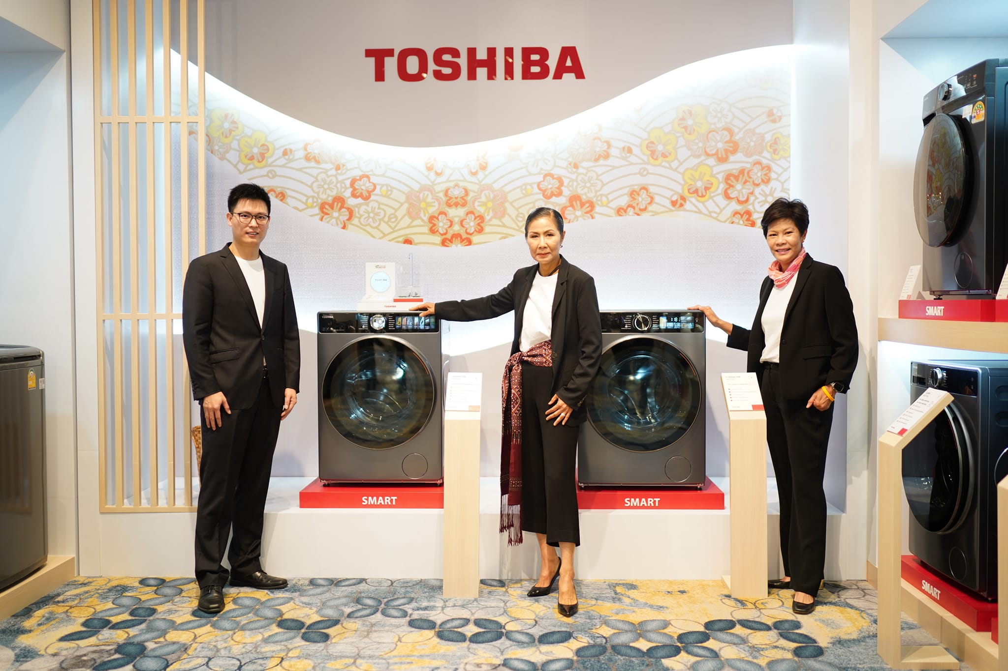 สำหรับเครื่องซักผ้า โตชิบาตั้งใจเผยโฉมเครื่องซักผ้าฝาหน้า และเครื่องซักอบเจเนอเรชันใหม่ 3 ซีรีส์ ยังมาพร้อมพาแนลแผงควบคุมแบบจอสี ระบบสัมผัส เพื่อให้เข้าใจและใช้งานง่าย นอกจากนี้ ตัวถังยังมีขนาดใหญ่พิเศษ ด้วยขนาด 535 มิลลิเมตร ทำให้แรงในการปั่นผ้ามากขึ้นและทำให้ผ้ายับน้อยลง นอกจากถังใหญ่แล้ว ช่องใส่ผ้ายังกว้างขึ้น ช่วยให้ใส่ผ้านวมสะดวกมากขึ้น ส่วนในเรื่องการทำความสะอาดผ้า ซีรีส์นี้มาพร้อมเทคโนโลยีใหม่ที่อัพเกรดขึ้นจากเดิม เป็น Ultra Fine Bubble Pro ที่จะปล่อยประจุไฟฟ้า สร้างฟองที่ละเอียดและเล็กกว่าเดิม ช่วยแทรกซึมเข้าสู่เส้นใยผ้า ขจัดคราบได้ดียิ่งขึ้น โดยเฉพาะคราบมัน คราบเหลืองของปกคอเสื้อ ช่วยให้ผ้าเหมือนใหม่อยู่เสมอ และไฮไลท์ที่สำคัญอีกตัวคือ Aroma+ เพราะเราให้ความสำคัญกับเรื่องกลิ่นหอม เราจึงพัฒนาโปรแกรมให้ลูกค้าเลือก เพิ่มระยะเวลาการปรับผ้านุ่มให้ยาวขึ้น เพื่อช่วยให้ผ้าหอมขึ้นและยาวนานกว่าปกติ