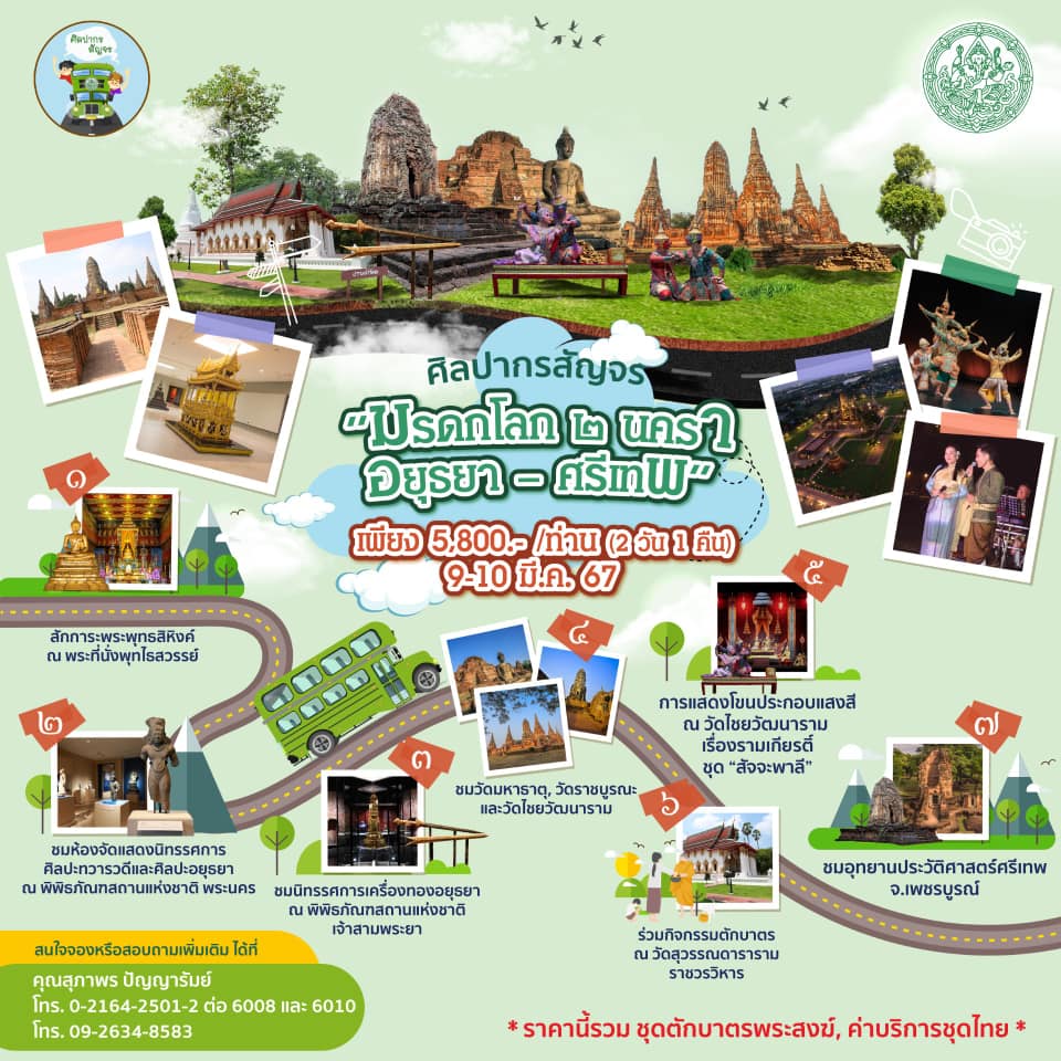 ชวนร่วมกิจกรรมเที่ยวชมโบราณสถาน ศิลปากรสัญจร ครั้งที่ ๒ “มรดกโลก ๒ นครา อยุธยา-ศรีเทพ”