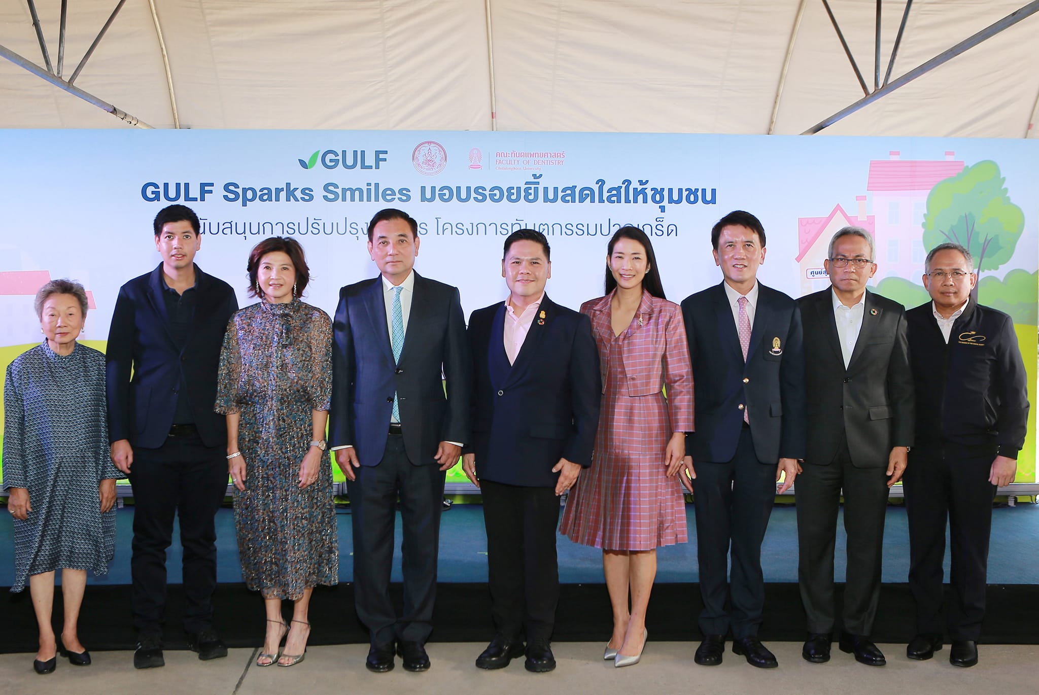 โครงการ GULF Sparks Smiles มอบรอยยิ้มสดใสให้ชุมชน เป็นโครงการที่เกิดจากความร่วมมือระหว่าง GULF และคณะทันตแพทยศาสตร์ จุฬาลงกรณ์มหาวิทยาลัย โดยเริ่มต้นในปี 2563 เพื่อช่วยเหลือประชาชนในพื้นที่ห่างไกลให้ได้รับการรักษาทางทันตกรรมที่มีประสิทธิภาพ และเพื่อเป็นจุดเริ่มต้นในการปลูกฝังให้คนไทยรู้จักป้องกัน ดูแล รักษา สุขภาพช่องปากอย่างถูกวิธี โดยนอกจากการออกหน่วยทันตกรรมเคลื่อนที่แล้ว ยังได้ต่อยอดโครงการ เพื่อขยายขอบเขตการรักษาสู่กลุ่มเด็กพิเศษ และกองทุนอวัยวะเทียมสำหรับผู้บกพร่องทางช่องปากและใบหน้า สะท้อนถึงพันธกิจของกัลฟ์ภายใต้แนวคิด Powering the Future, Empowering the People ที่มุ่งดำเนินธุรกิจควบคู่ไปกับการยกระดับคุณภาพชีวิตของคนในสังคมอย่างยั่งยืน