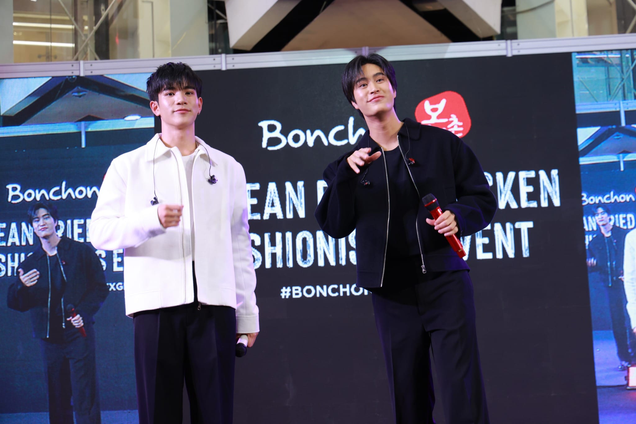 งานนี้หนุ่ม เจมีไนน์ - นรวิชญ์ ฐิติเจริญรักษ์ ได้เผยถึงความรู้สึกว่า "พอรู้ว่าผมกับ โฟร์ทได้รับเลือกให้เป็นแบรนด์แอมบาสเดอร์ในปีนี้ รู้สึกเป็นเกียรติและตื่นเต้นมากครับที่ได้เป็นส่วนหนึ่งของบอนชอน เพราะเป็นแบรนด์ไก่ทอดเกาหลีอันดับ 1 ที่พวกเราชอบทานอยู่แล้ว จึงอยากใช้โอกาสนี้เป็นตัวแทนของแบรนด์ในการสื่อสารไปยังเพื่อนๆ ผ่านเมนูใหม่ของบอนชอน สะท้อนความแซ่บซ่าที่ตรงกับบุคลิกของเรา 2 คน เข้ากับคอนเซ็ปต์ในเรื่องของรสชาติที่เป็นเอกลักษณ์และความอร่อยแบบต้นตำรับไก่ทอดเกาหลีให้กับทุกคนได้ลองทานกัน โดยเฉพาะเมนูใหม่ The Whole Chicken ที่บอนชอนได้จัดเต็มทุกอย่างคูณ 2 ทั้งการเพิ่มความใหญ่ ความกรอบ และความอร่อย รวมถึงความสนุกแบบเต็มพิกัด ที่ทุกคนจะได้รับจากเราสองคน โดยเฉพาะการมาของเมนูใหม่ที่จะเสิร์ฟไก่เซตใหญ่ให้ทุกคนอย่างจุใจมากถึง 18 ชิ้นแบบครบทุกส่วน ทั้ง ปีก อก สะโพก และน่อง ก็สามารถเลือกอร่อยได้ในเซตเดียว ไม่ว่าจะกับก๊วนเพื่อน หรือทานทั้งครอบครัวก็ตอบโจทย์แน่นอน"