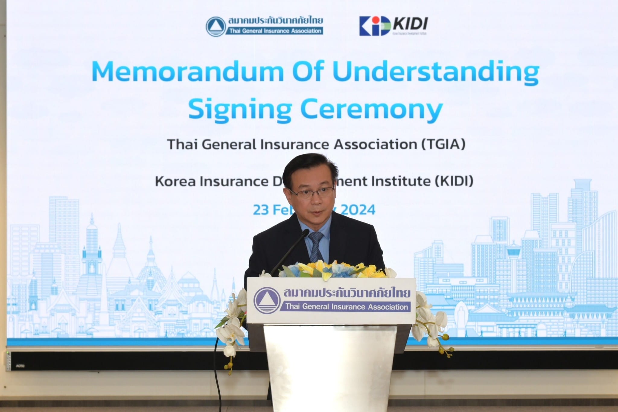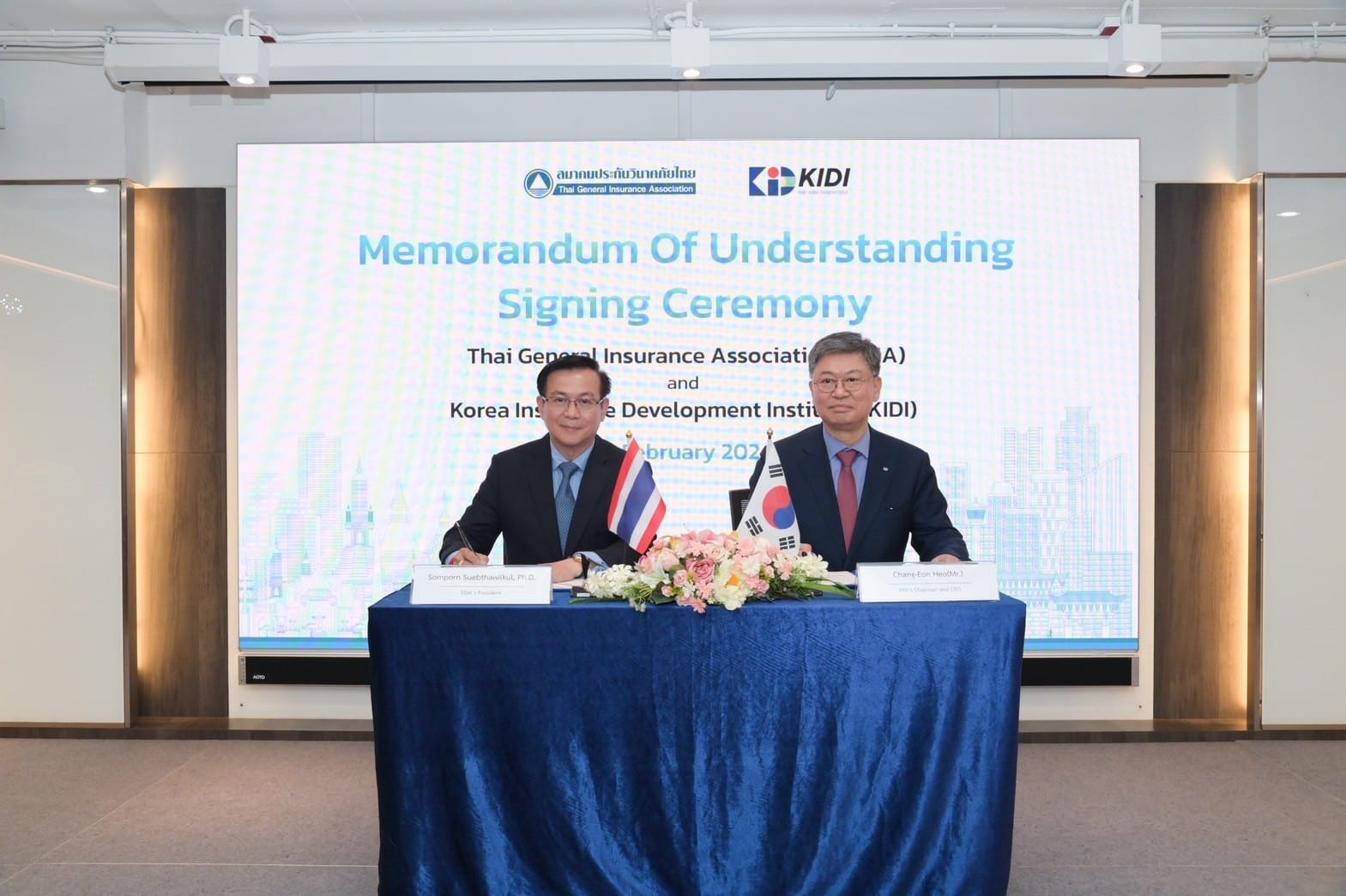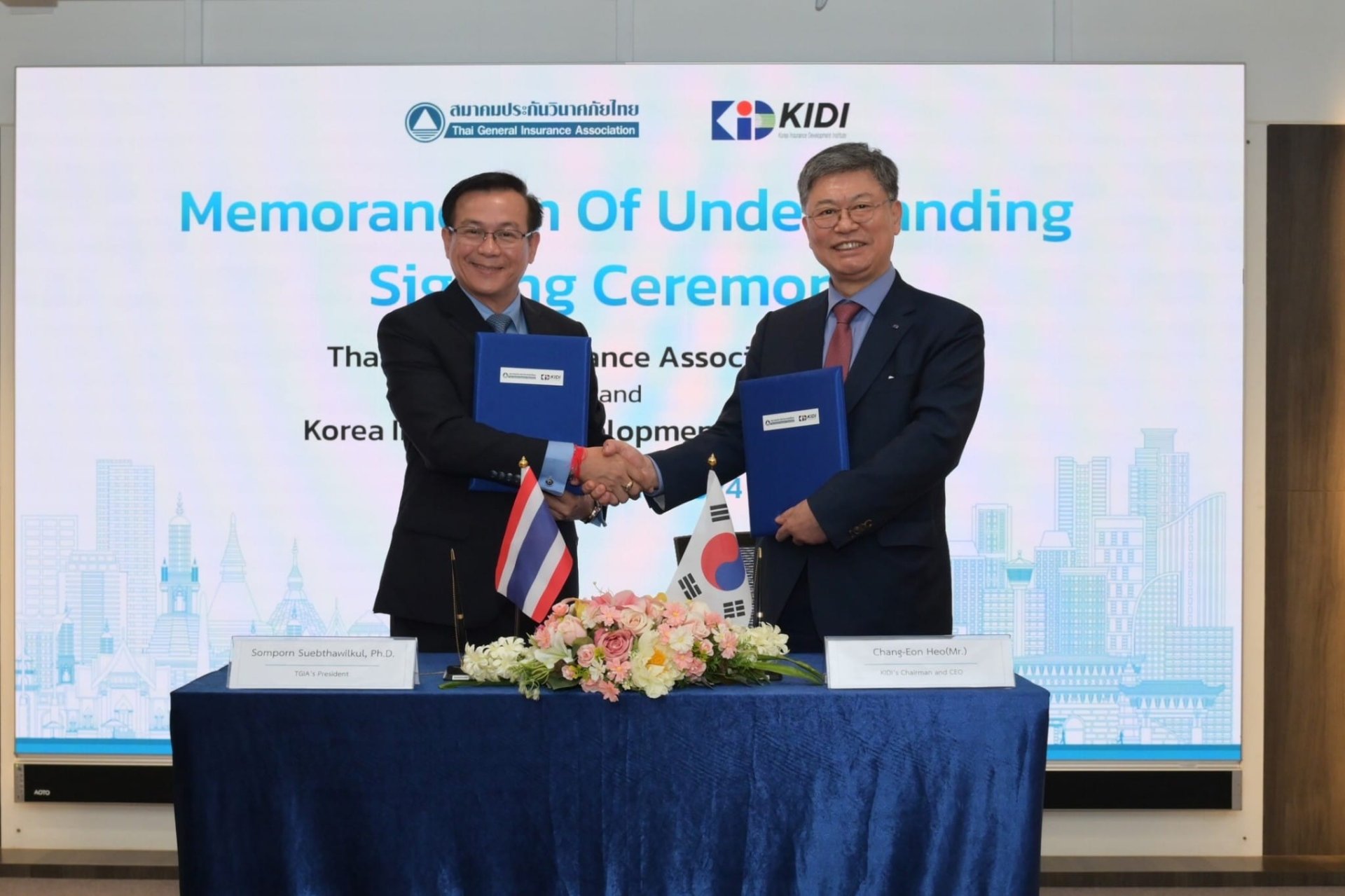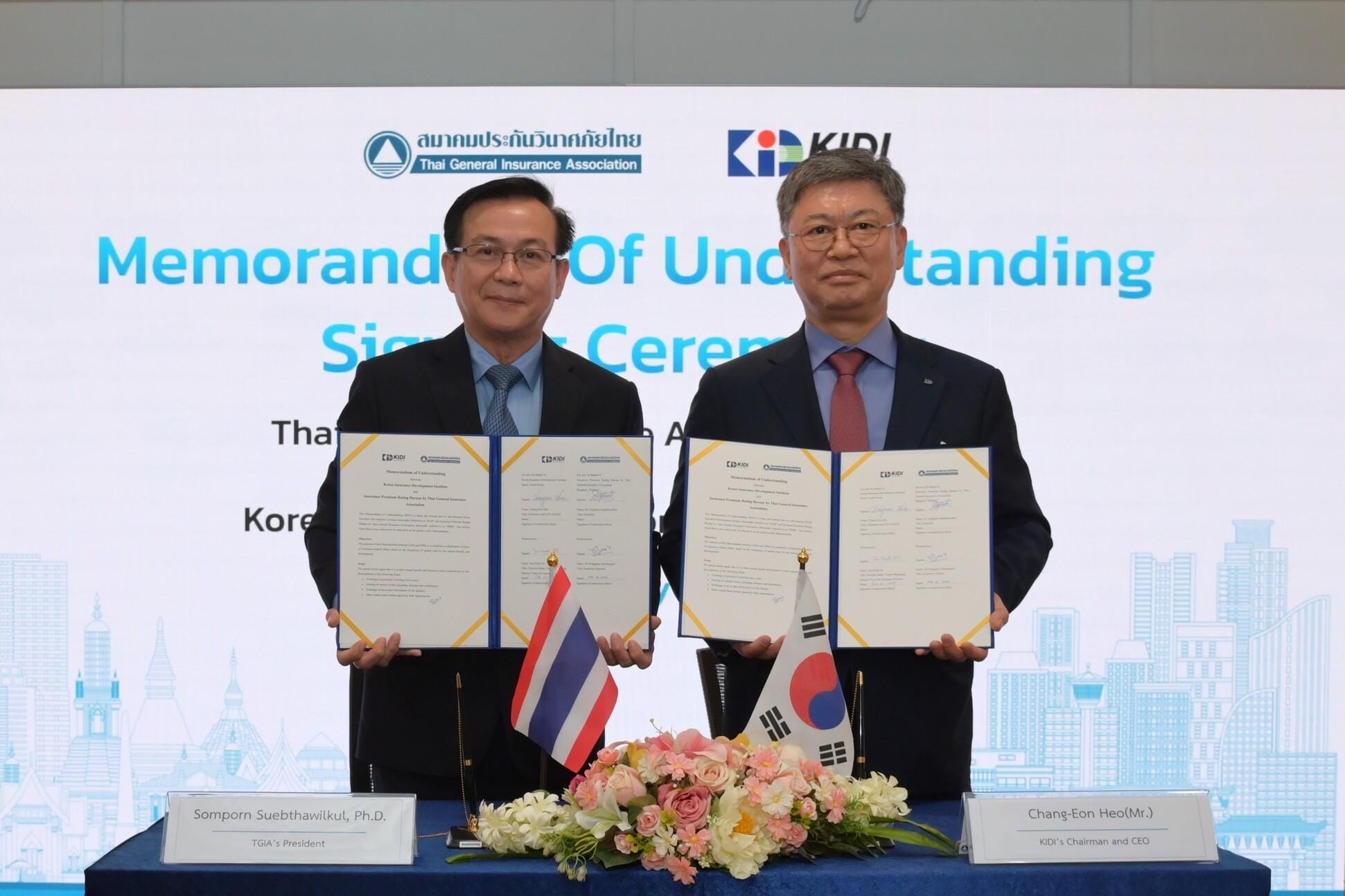สมาคมประกันวินาศภัยไทย ลงนามบันทึกความเข้าใจกับ สถาบันพัฒนาการประกันภัยแห่งประเทศเกาหลี (KIDI) เพื่อขับเคลื่อนอุตสาหกรรมประกันวินาศภัยให้มีความเติบโตก้าวหน้า มุ่งสู่ระดับสากล พร้อมพัฒนาทักษะการเรียนรู้ผ่านการจัดประชุม สัมมนา และศึกษาดูงาน แลกเปลี่ยนข้อมูลที่ทันสมัย อันก่อให้เกิดเป็นผลประโยชน์ร่วมกันทั้งสององค์กร