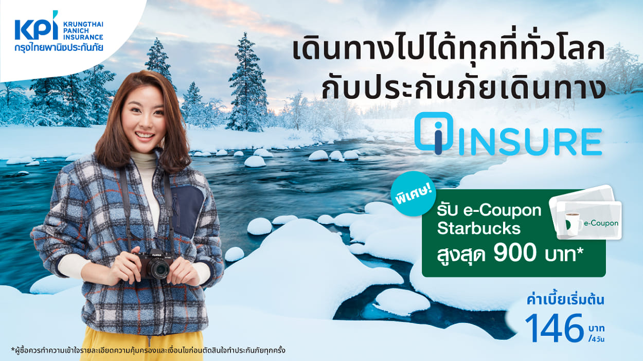 "เคพีไอ" อยากให้ทุกการเดินท่องเที่ยวของคุณเต็มไปด้วยความสุข ไม่ว่าคุณจะเดินทางไปที่ไหน ๆ ของทั่วทุกมุมโลก ก็อุ่นใจ เที่ยวได้ชิล ๆ พิเศษสุด! ฉลองครอบรอบ 70 ปี เคพีไอ ประกันภัยเดินทาง i-Insure มอบความสุขให้ 2 ต่อ ต่อที่ 1 รับส่วนลด 10% และต่อที่ 2 รับ e-Coupon Starbucks สูงสุด 900 บาท** ตั้งแต่วันนี้ 31 ธ.ค. เพียงแค่คลิก https://kpiiinsure.kpi.co.th/iinsure/app สอบถามเพิ่มเติมได้ที่ KPI Contact Center โทร. 0 2624 1111 หรือคลิก www.kpi.co.th