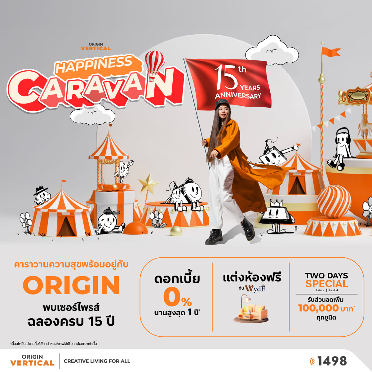 ออริจิ้น เวอร์ติเคิล (ORIGIN VERTICAL) ร่วมฉลองครบรอบ 15 ปีออริจิ้น พร็อพเพอร์ตี้ ส่งความสุขผ่านแคมเปญ HAPPINESS CARAVAN บุกงานมหกรรมบ้านและคอนโดครั้งที่ 45 วันที่ 21-24 มี.ค. นี้ ที่บูธ ORIGIN ฮอลล์ 5 ศูนย์ประชุมแห่งชาติสิริกิติ์