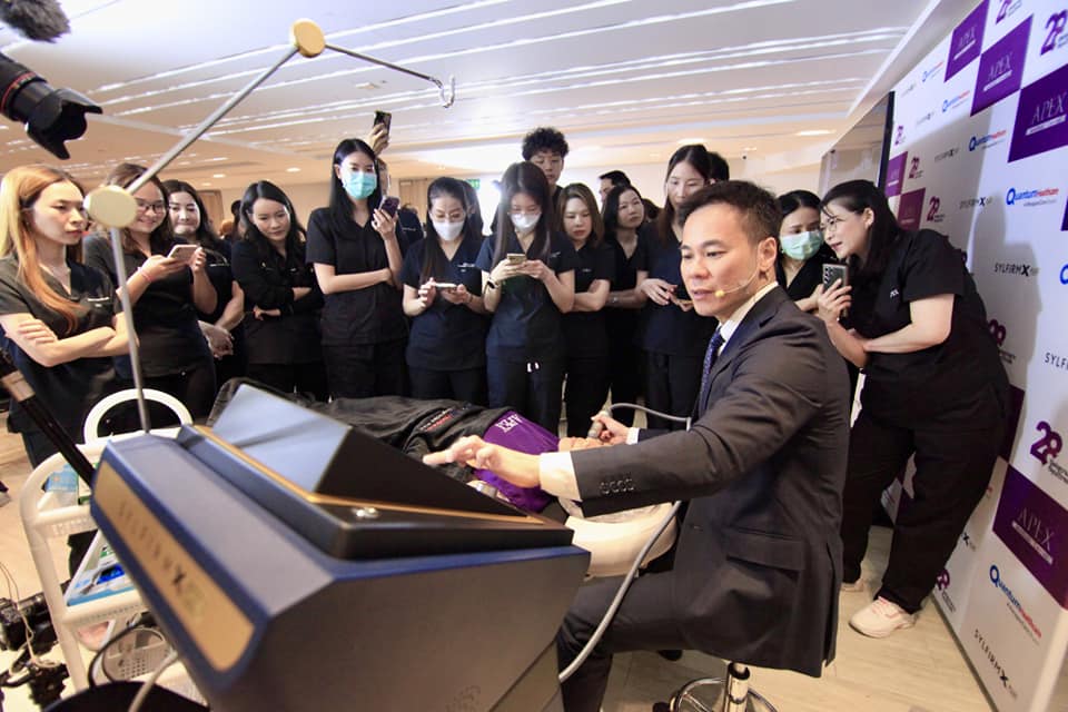 โดย Training at Apex Surgery Hospital เอเพ็กซ์ เมดิคอล เซ็นเตอร์ ร่วมกับแพทย์ผู้เชี่ยวชาญ ด้านความงามและผิวหนัง พญ. รัตติยา เตชะขจรเกียรติ แพทย์ประจำ Apex Clinic, นพ.เอกลักษณ์ ธรรมสุนทร ตัวแทนฝ่ายบริหาร Apex Medical Center และได้รับเกียรติจาก นางสาวอุมาภรณ์ เมธเมาลี Aesthetics Business Unit Director บริษัท ควอนตั้ม เฮลท์เเคร์ (ไทยเเลนด์) จำกัด ผู้นำเข้าและจำหน่ายเครื่องมือแพทย์ให้กับโรงพยาบาล คลินิกความงามชั้นนำของเมืองไทย ผู้นำเข้าเครื่อง Sylfirm X Plus มาร่วมงานและการันตีคุณภาพของเครื่องภายในงาน โดยมีความมุ่งมั่นนำเสนอทางเลือกใหม่ควบคู่ไปกับการส่งเสริมและพัฒนาอุตสาหกรรมความงามไทยให้เติบโต ภายใต้คุณภาพและมาตรฐานระดับสากล