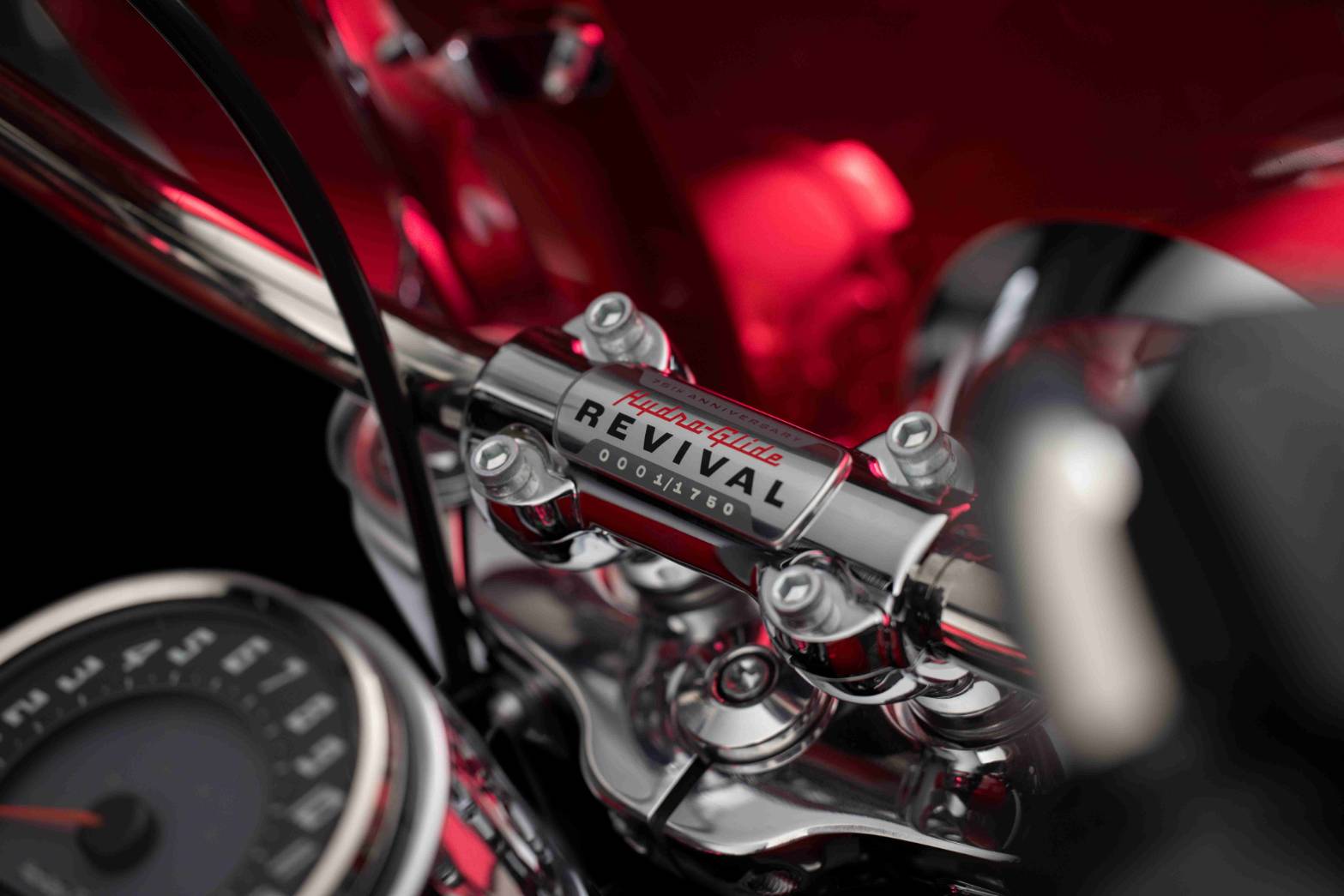 สี Hydra-Glide Revival สะกดทุกสายตาด้วยสี Redline Red แบบคัสตอม และแถบกราฟิกสี Birch White ด้านข้างถังน้ำมัน ถอดแบบมาจากรถมอเตอร์ไซค์รุ่นปี 1956 และมาพร้อมกับการออกแบบที่โดดเด่นมากมาย อาทิ ตราสัญลักษณ์ Harley-Davidson V แบบโครเมียม ที่ได้รับแรงบันดาลใจจากตราสัญลักษณ์ที่ตัวถังน้ำมันของรุ่นปี 1955-1956 บนถังน้ำมัน ตราสัญลักษณ์ Hydra-Glide บริเวณที่บังโคลนหน้า ป้าย Hydra-Glide Revival ที่ระบุหมายเลขลำดับของตัวรถครอบอยู่บนบาร์ที่จับ และกราฟิกสำหรับรถมอเตอร์ไซค์ Icons Collection บนบังโคลนหลังแสดงถึงรถมอเตอร์ไซค์รุ่นลิมิเต็ดอิดิชัน