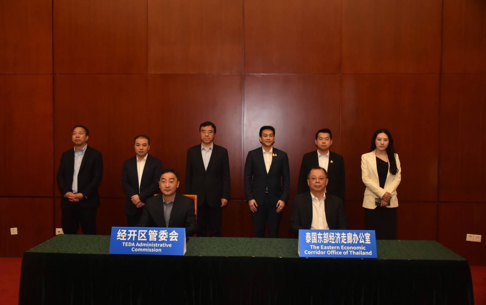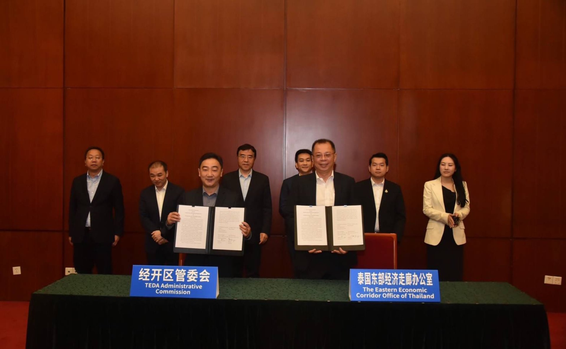 ดร.จุฬา สุขมานพ เลขาธิการคณะกรรมการนโยบายเขตพัฒนาพิเศษภาคตะวันออก (สกพอ.) หรืออีอีซี ได้ลงนามหนังสือแสดงเจตจำนง หรือ LOI (Letter of Intent on Cooperation) ว่าด้วยความร่วมมือระหว่างเขตพัฒนาพิเศษภาคตะวันออก และเขตพัฒนาเศรษฐกิจและเทคโนโลยีเทียนจิน (Tianjin Economic-Technological Development Area: TEDA) ร่วมกับ นาย Cao Hong Gang รองประธานคณะกรรมการบริหารเขตพัฒนาเศรษฐกิจและเทคโนโลยี TEDA โดยมี ดร.ภัณฑิล จงจิตรตระกูล ผู้ช่วยรัฐมนตรีประจำกระทรวงพาณิชย์ ประธานคณะอนุกรรมการส่งเสริมและติดตามการลงทุนในเขตพัฒนาพิเศษภาคตะวันออก ดร.ธิติวัช อดิศรพันธ์กุล รองเลขาธิการนายกรัฐมนตรีฝ่ายการเมือง คณะอนุกรรมการส่งเสริมและติดตามการลงทุนในเขตพัฒนาพิเศษภาคตะวันออก นางสาวชญานุช มณีรินทร์ คณะอนุกรรมการส่งเสริมและติดตามการลงทุนในเขตพัฒนาพิเศษภาคตะวันออก และนาย Lian Mao Jun สมาชิกคณะกรรมการประจำพรรคนครเทียนจิน และเลขาธิการคณะกรรมการพรรคเขตพัฒนาเศรษฐกิจใหม่ปินไห่ พร้อมคณะผู้บริหารร่วมเป็นพยาน
