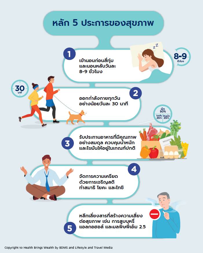 สามารถอ่านข้อมูลเพิ่มเติม หรือซื้อหนังสือ "Health Brings Wealth" ได้ที่ Shopee, Lazada และ LINE Official: @bdmswellnessclinic