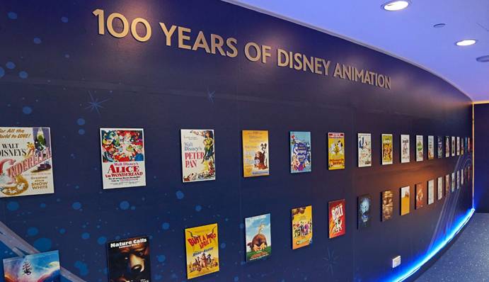 ผู้เข้าชมสามารถเดินชมโปสเตอร์ภาพยนตร์มากมาย จากประวัติศาสตร์ 100 ปีของแอนิเมชั่นดิสนีย์