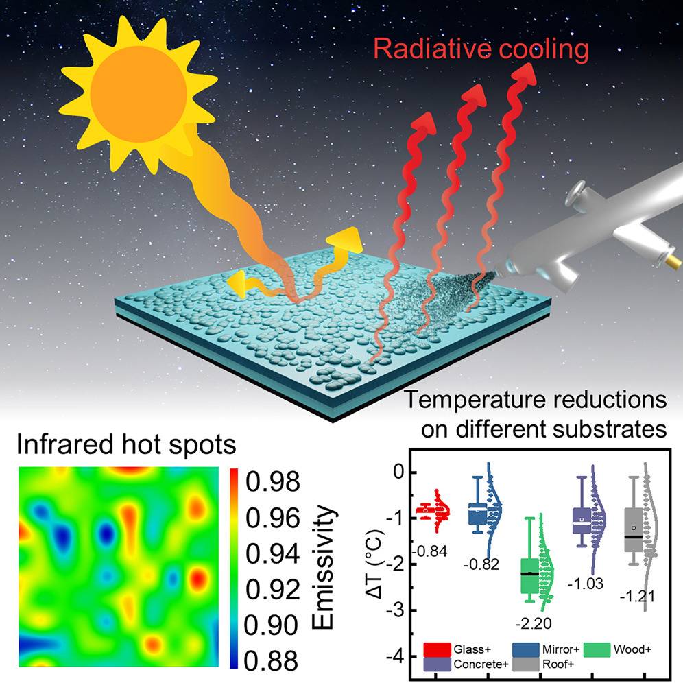 การพัฒนา สเปรย์ฟิล์ม ลดอุณหภูมิ นับว่าเป็นครั้งแรกของโลกที่กระบวนการสเปรย์ถูกนำมาใช้สร้างรูปทรงและรูปร่าง สามารถเพิ่มการระบายความร้อนด้วยการแผ่รังสีอินฟราเรดในช่วง 8 13 ไมโครเมตร และใช้ได้กับลักษณะพื้นผิวที่หลากหลาย แตกต่างจากสินค้าในปัจจุบันที่ใช้สติกเกอร์ในการเคลือบซึ่งจะเหมาะสำหรับติดกับวัสดุผิวเรียบเท่านั้น โดยทีมวิจัยได้ทำการทดลองเคลือบลงบนวัสดุก่อสร้างต่าง ๆ อาทิ แก้ว กระจก แผ่นโลหะสำหรับหลังคา (metal sheet) ปูน (concrete) และกระเบื้องหลังคา พบว่า วัสดุก่อสร้างที่ถูกเคลือบด้วย สเปรย์ฟิล์ม ลดอุณหภูมิ สามารถลดความร้อนโดยเฉลี่ยถึง 0.25 2.20 องศาเซลเซียส กระบวนการสเปรย์ทำได้เร็ว มีการขนส่งที่สะดวก และสามารถทำได้ขนาดเล็กใหญ่ตามที่ต้องการ ซึ่งนวัตกรรมนี้มีต้นทุนอยู่ในช่วง 20 - 50 บาทต่อตารางเมตร เมื่อเทียบกับราคาสินค้าลดอุณหภูมิด้วยการแผ่รังสีในท้องตลาดในปัจจุบันที่มีราคาในช่วง 200 - 500 บาท ต่อตารางเมตร