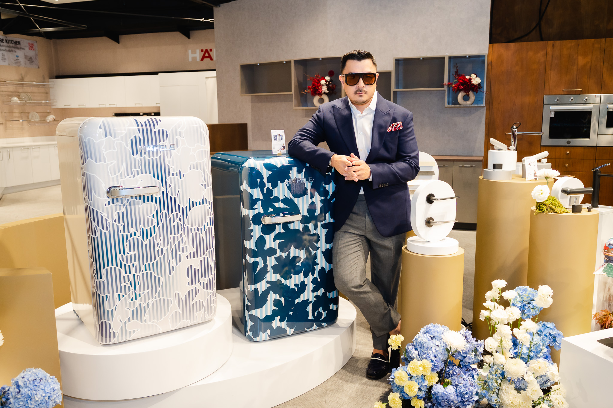 หมู ASAVA - พลพัฒน์ อัศวะประภา มาพร้อมกับดีไซน์ที่เรียบง่ายแต่ยังคงคลาสสิกเหนือกาลเวลาในแบบที่เป็นอัตลักษณ์ของแบรนด์ ASAVA ถ่ายทอดมาสู่ HAFELE Retro Minibar Refrigerator (Cute Series) ในชื่อคอลเลคชั่น INTRA ACTION FLORAL