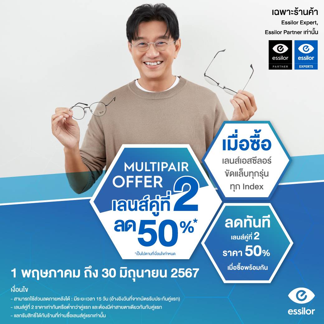 สัมผัสประสบการณ์การมองเห็นที่เหนือกว่า มั่นใจในทุกการเคลื่อนไหว กับเลนส์โปรเกรสซีฟ Varilux XR series พร้อมรับโปรโมชั่นพิเศษ ตั้งแต่วันนี้ ถึง 30 มิถุนายน 2567 สั่งตัดเลนส์ขัดแล็บเอสซีลอร์ทุกรุ่นจากร้านที่มีเครื่องหมาย Essilor Experts เลนส์คู่ที่ 2 ลดทันที 50% ค้นหาข้อมูลเพิ่มเติม https://www.essilor.com/th-th/multi-pair-offer