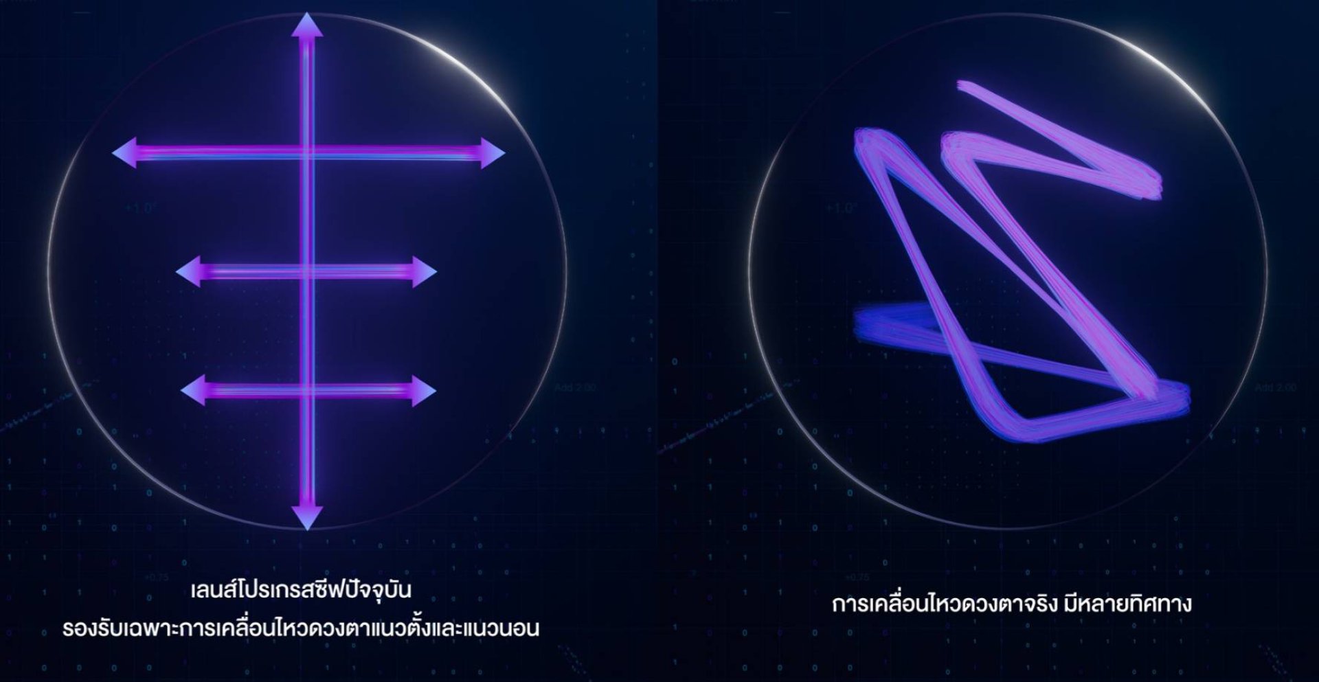2. เทคโนโลยี XR-Motion ปรับแต่งเลนส์ทั้งสองข้างตามข้อมูลพฤติกรรมการมองของผู้สวมใส่ มอบการมองเห็นที่คมชัดทันทีทุกระยะ แม้ขณะเคลื่อนไหว