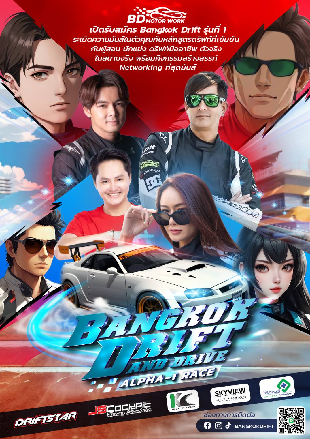 สำหรับผู้ที่สนใจ สามารถสมัครเข้ามาเป็น Bangkok Drift and Drive : Alpha-1 Race รุ่น 1 กันได้ โดยจะมีการเรียนทุกวันศุกร์ของสัปดาห์ ทั้งหมด 9 สัปดาห์ เริ่ม 3 มิถุนายน 3 สิงหาคม 2567 (รวมทริปต่างจังหวัด 2 ครั้ง และพิธีเปิด/พิธีปิดหลักสูตรฯ) ค่าเรียนตลอดหลักสูตร ราคา 140,000 บาท (มีรถยนต์สำหรับเรียนให้ผู้สมัคร)