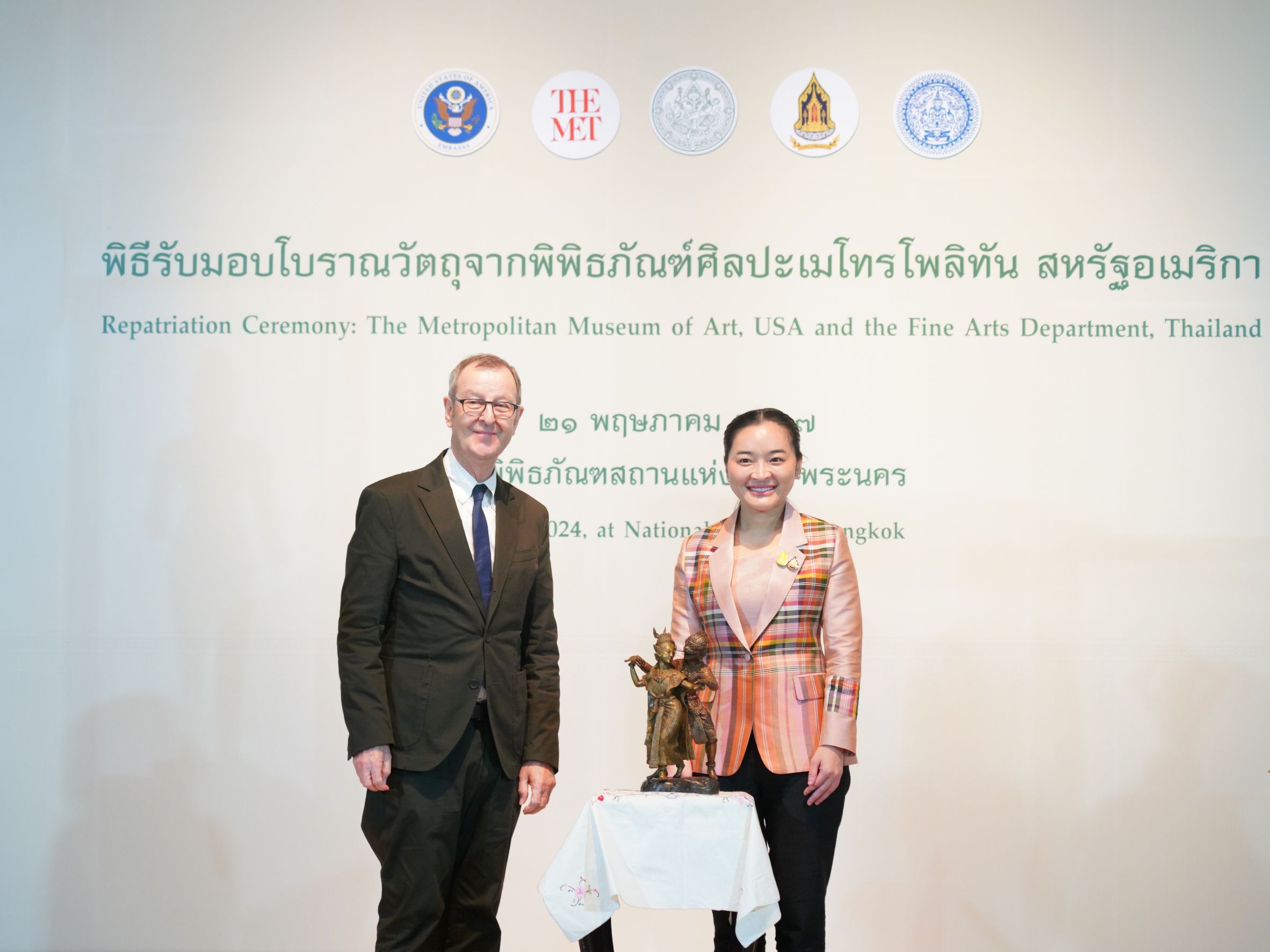 "รมว.วธ." รับมอบ "โบราณวัตถุ ล้ำค่า 2 รายการ" จากพิพิธภัณฑ์ศิลปะเมโทรโพลิทัน สหรัฐอเมริกา กลับสู่ประเทศไทย