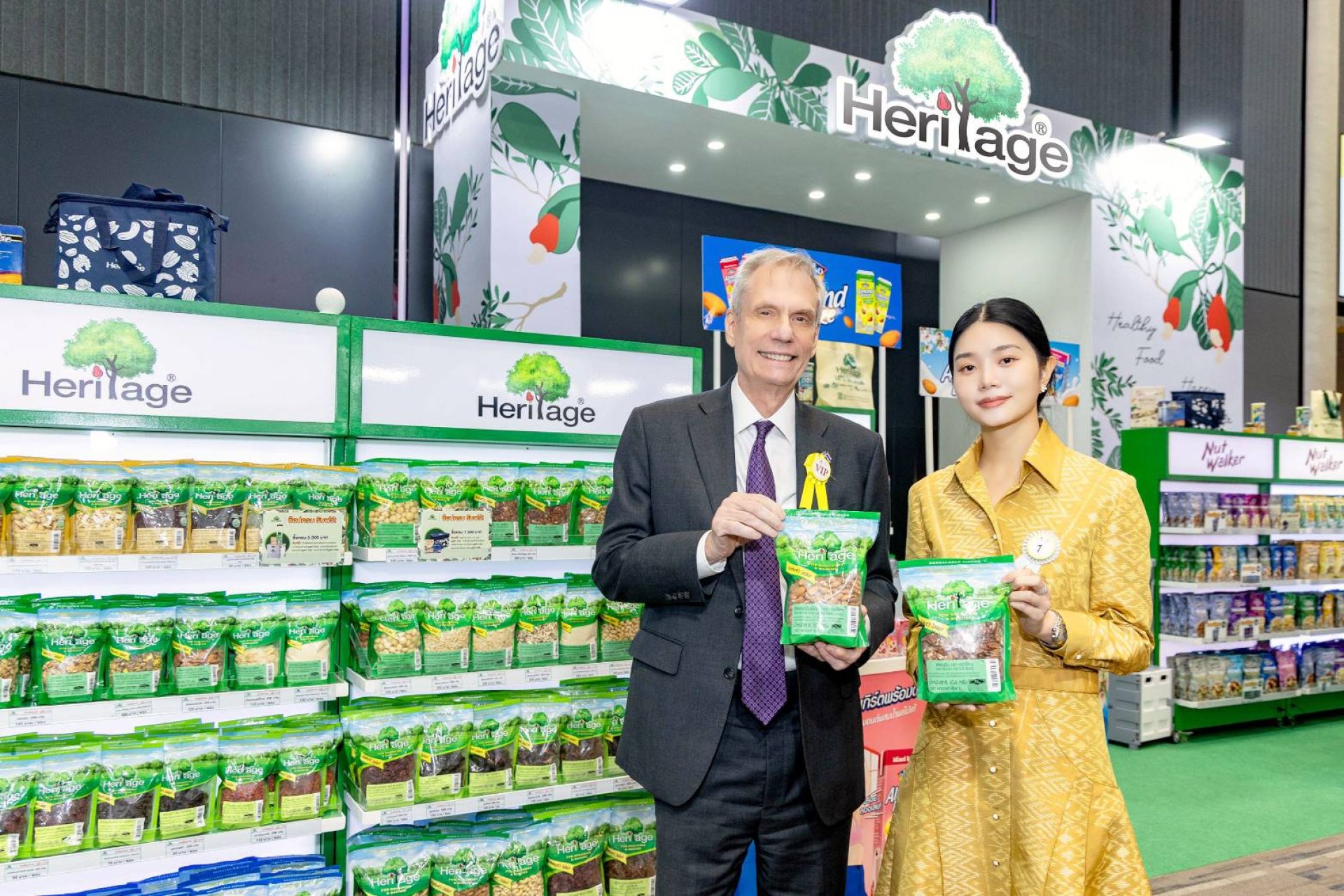 โดยปีนี้ เครือเฮอริเทจ ชูแนวคิด Healthy Food, Happy Life เล็งเห็นถึงความสำคัญของการมีสุขภาพที่ดี นำมาซึ่ง ความสุขทั้งจากภายในและภายนอก โดยนำผลิตภัณฑ์ชั้นนำมากมาย อาทิ เฮอริเทจ ผลิตภัณฑ์ถั่ว ธัญพืชและผลไม้พรีเมียม สำหรับเป็นวัตถุดิบทำอาหารและเครื่องดื่มเพื่อสุขภาพ, บลูไดมอนด์ ผลิตภัณฑ์อัลมอนด์และนมอัลมอนด์จากแคลิฟอร์เนีย, ซันคิสท์ ผลิตภัณฑ์ถั่วพิสทาชิโอ ถั่วพรีเมียมคุณภาพหลากหลายชนิด และเครื่องดื่มน้ำนมพิสทาชิโอ, นัท วอล์คเกอร์ ขนมขบเคี้ยวประเภทถั่วพรีเมียมและธัญพืช, เนเจอร์ เซ็นเซชั่น ผลิตภัณฑ์ผลไม้อบแห้งและกราโนล่า, วันเดอร์พัฟฟ์ ข้าวโพดอบกรอบผสมถั่วพรีเมียม และ ฟรังซัว คุ้กกี้สไตล์โฮมเมด เป็นต้น