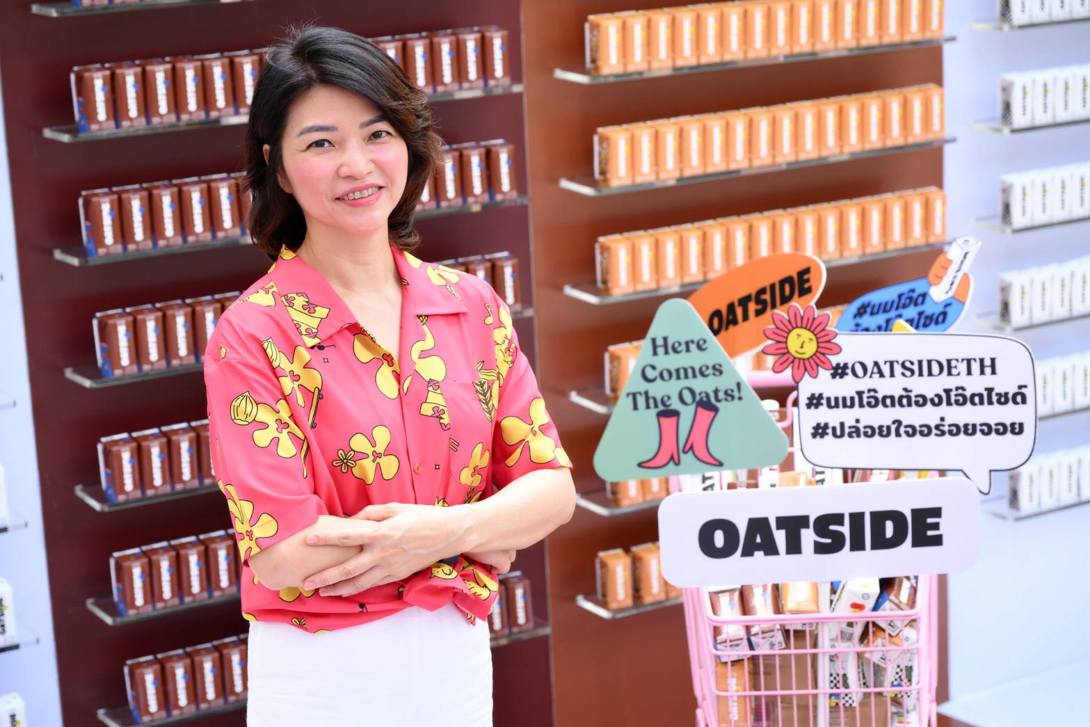 คุณซินดี้ ลิน ผู้อำนวยการฝ่ายการตลาดของโอ๊ตไซด์ (OATSIDE) เปิดเผยว่า กว่า 2 ปีที่โอ๊ตไซด์ (OATSIDE) นมโอ๊ตคุณภาพพรีเมียมจากสิงคโปร์ได้ส่งผลิตภัณฑ์ OATSIDE ขนาด 1 ลิตร รุกตลาดเครื่องดื่มและอาหารเพื่อสุขภาพไทย ซึ่งได้รับการตอบรับจากร้านกาแฟ เบเกอรี่ และผู้บริโภคทั่วประเทศเป็นอย่างดี พร้อมเดินหน้ากลยุทธ์การตลาดเพื่อเพิ่มการเข้าถึงและขยายฐานผู้บริโภคในทุกเซกเมนต์ เพื่อเพิ่มส่วนแบ่งการตลาด (Market Share) ในกลุ่มรีเทล ซึ่งสอดคล้องกับเทรนด์ผู้บริโภคในปัจจุบัน ที่เน้นบริโภคเครื่องดื่มและอาหารที่สะดวก-รวดเร็ว รวมถึงใส่ใจและเลือกทานอาหารที่ดีต่อสุขภาพมากขึ้น