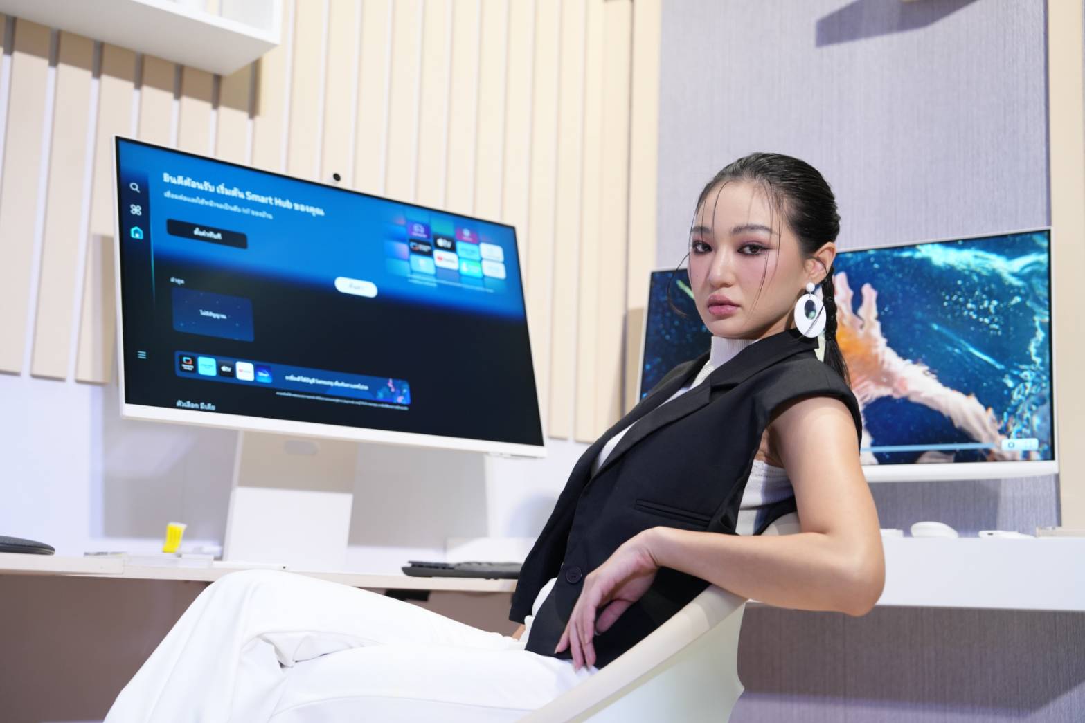 Smart Monitor M8: จอมอนิเตอร์สำหรับคนทำงานที่ผสานความบันเทิงไว้ในจอเดียวที่มาพร้อมกับการประมวลผล AI เสียงและภาพที่คมชัด มาพร้อมการอัปเกรดคุณสมบัติใหม่เพื่อเพิ่มอรรถรสความบันเทิงและประสิทธิภาพในการทำงาน ขับเคลื่อนด้วยโปรเซสเซอร์ NQM AI ช่วยยกระดับภาพและเสียงให้คมชัดขึ้น พร้อมฟีเจอร์ Active Voice Amplifier Pro ตรวจจับเสียงรอบข้าง เพื่อปรับระดับเสียงของลำโพงให้คมชัดมากที่สุด และ 360 Audio Mode ที่จับคู่กับ Galaxy Buds และกล้อง SlimFit ในตัว ช่วยให้การสนทนาทางวิดีโอผ่าน Samsung Dex ง่ายขึ้น นอกจากนี้ยังมีฟีเจอร์ Workout Tracker จับคู่กับ Galaxy Watch แสดงข้อมูลสุขภาพแบบเรียลไทม์บนหน้าจอ