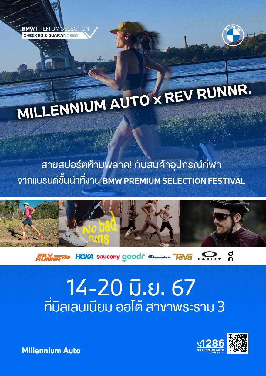 *14-20 มิถุนายน ครั้งแรกที่ มิลเลนเนียม ออโต้ ร่วมกับ REV RUNNR เอาใจสายสปอร์ต กับอุปกรณ์กีฬา แบรนด์ชั้นนำกว่า 100 รายการ อาทิ On, Hoka, Saucony, Goodr, Champion, Teva, Oakley จาก REV RUNNR ที่ยกขบวนสินค้านำมาให้เลือกช้อปอย่างจุใจ ที่โชว์รูมมิลเลนเนียม ออโต้ พระราม 3 และยังมีสินค้า บีเอ็มดับเบิลยู ไลฟ์สไตล์ และแอคเซสเซอรีราคาพิเศษ