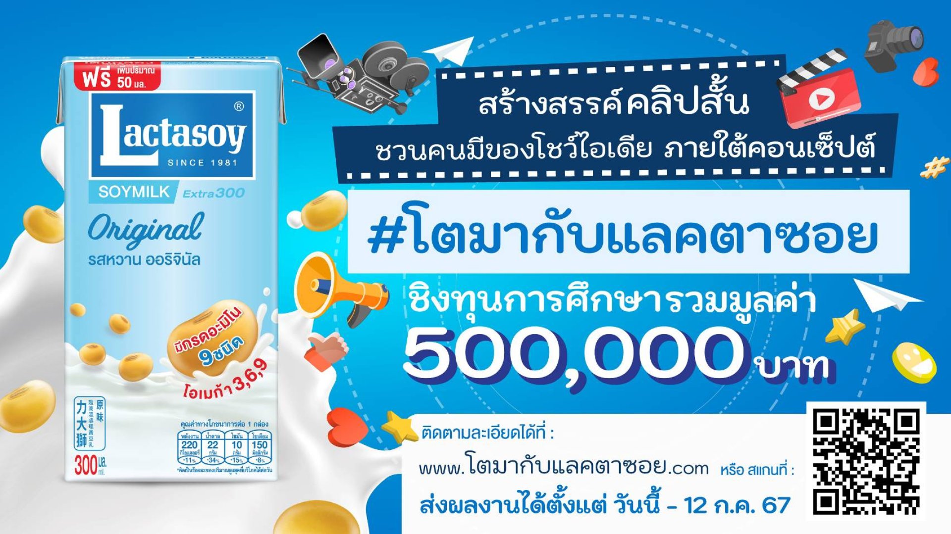 "แลคตาซอย" ชวนน้องๆ นักเรียน นิสิต นักศึกษา สายคอนเทนต์ มาย้อนความรู้สึกที่มีต่อแลคตาซอย โชว์ไอเดียผ่านการประกวดคลิปวิดีโอ "โตมากับแลคตาซอย" ชิงเงินรางวัลทุนการศึกษารวมมูลค่ากว่า 5 แสนบาท