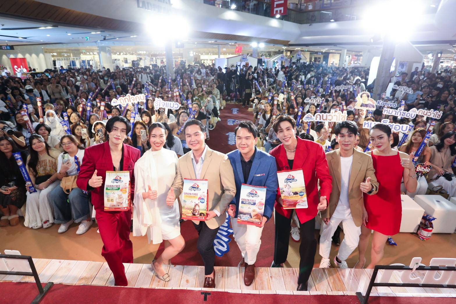ฉลองความสำเร็จอย่างยิ่งใหญ่คนแน่นขนัดล้นทะลัก กับการเติบโตอย่างก้าวกระโดดสำหรับอาหารแมวและสุนัขคานิว่า (Kaniva) และการก้าวเข้าสู่ปีที่ 4 กับ 4 พรีเซนเตอร์ นายนิติพงศ์ เลาหวิศิษฏ์ และ นายจารุวัฒน์ เลาหวิศิษฏ์ กรรมการบริหารบริษัท เพ็ท โพรเทคท์ ฟู้ด จำกัด ทุ่มงบเนรมิตทุกพื้นที่ขอบคุณลูกค้าจัดงาน 'ทุกเวลา มีคานิว่า' ประกาศเปิดตัวคู่จิ้นมาแรง 'เชน' ณัชพล ชีวะปัญญาโรจน์ และ 'โอปอล' กฤษภาฑร ชวัลวัชรากร ในฐานะพรีเซนเตอร์คู่ใหม่ เสริมทัพ 'เจษ' เจษฎ์พิพัฒ ติละพรพัฒน์ และ 'ไบเบิ้ล' วิชญ์ภาส สุเมตติกุล พรีเซนเตอร์สุดฮอตอาหารแมวที่ครั้งนี้มาพร้อมกับขนมแมวเลียรูปแบบใหม่ Kaniva Creamy และอาหารแมวคานิว่าสูตรใหม่ Holistic Grain Free เอาใจทาสแมว รวมถึงต่อยอดสู่อาหารสุนัข พร้อมแขกรับเชิญพิเศษ "แก้มบุ๋ม ปรียาดา - พีท กันตพร" พร้อมศิลปินชื่อดัง 'ปาล์มมี่' จัดเต็มมินิคอนเสิร์ตท่ามกลางไฮไลต์สุดฟินจาก 4 พรีเซนเตอร์ 'เชน-โอปอล-เจษ-ไบเบิ้ล' ที่ต่างร่วมถ่ายทอดโมเมนต์สุดอบอุ่นไปกับกิจกรรมมากมาย จนกลายเป็นปรากฏการณ์สำคัญแห่งปีโดยมี "ดีเจต้นหอม-อ๋อง" รับหน้าที่พิธีกร ท่ามกลางเหล่าเซเลบริตี้ สื่อมวลชน ร่วมยินดีจำนวนมาก ณ เซ็นทรัล ลาดพร้าว