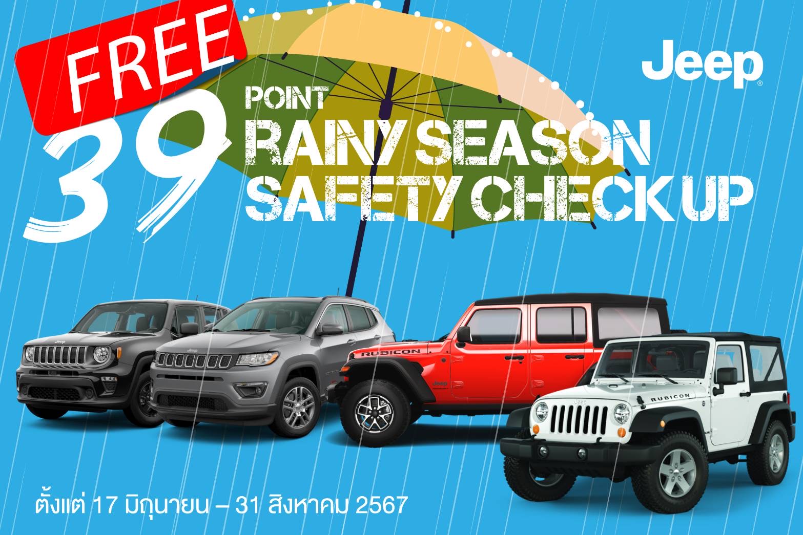 "เปอโยต์-จี๊ป ประเทศไทย" อัดโปรแรงรับหน้าฝน เชิญนำรถเข้าตรวจสภาพ ฟรี! 39 รายการ