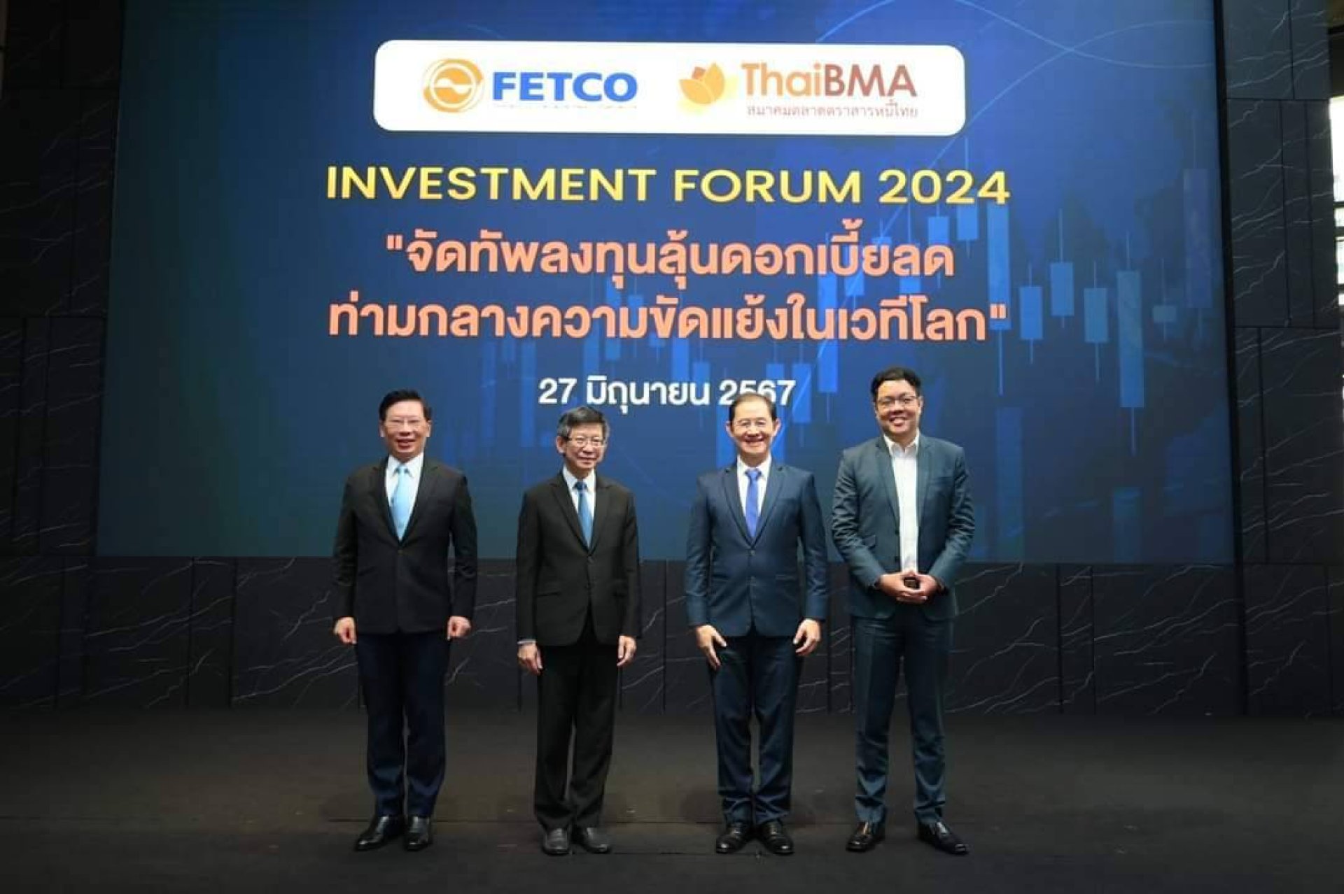เมื่อวันที่ 27 มิถุนายน 2567 สมาคมตลาดตราสารหนี้ไทย (ThaiBMA) ร่วมกับสภาธุรกิจตลาดทุนไทย (Federation of Thai Capital Market Organization) จัดงานสัมมนา "จัดทัพลงทุนลุ้นดอกเบี้ยลด ท่ามกลางความขัดแย้งในเวทีโลก" ณ ห้องประชุมศุกรีย์ แก้วเจริญ ชั้น 3 อาคารตลาดหลักทรัพย์แห่งประเทศไทย ที่ต้องเพิ่มพูนความรู้ด้านการลงทุนให้แก่นักลงทุนทั่วไปโดยไม่มีค่าใช้จ่าย มีนักลงทุนสนใจร่วมงานสัมมนาในช่องทางต่างๆ จำนวนมาก มุมมองเศรษฐกิจและการลงทุนจากวิทยากร มีประเด็นที่สำคัญ ดังนี้