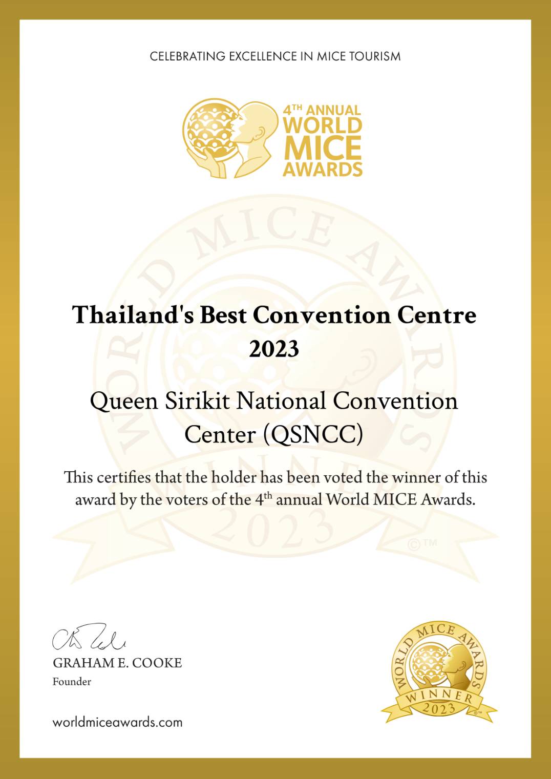 ศูนย์การประชุมแห่งชาติสิริกิติ์ คว้ารางวัลจากเวที World MICE Awards ในฐานะ "ศูนย์การประชุมที่ดีที่สุดในประเทศไทย ประจำปี 2023" (Thailand's Best Convention Centre 2023) จากการโหวตของผู้อยู่ในแวดวงอุตสาหกรรมไมซ์-ท่องเที่ยว และคนจากทั่วโลก ซึ่งได้รับการประกาศรางวัลอย่างเป็นทางการในปี 2024 ซึ่งได้สร้างมาตรฐานและยกระดับอุตสาหกรรมไมซ์ของไทยสู่ระดับสากล