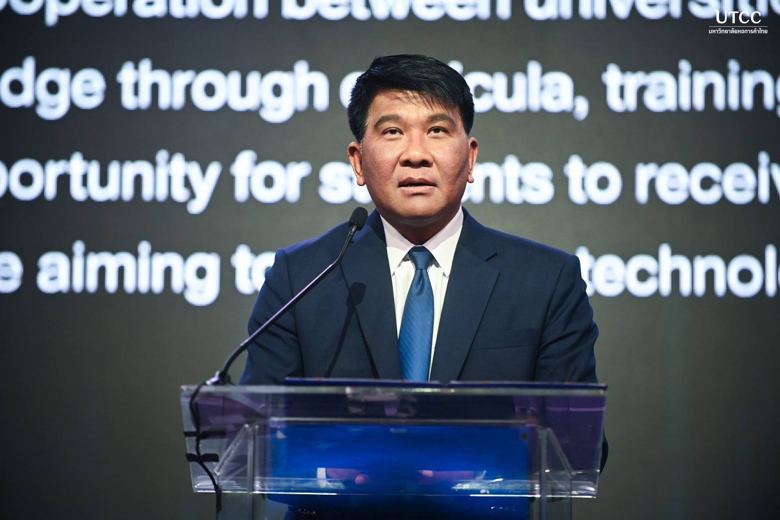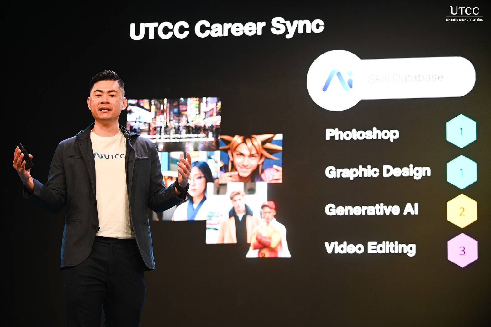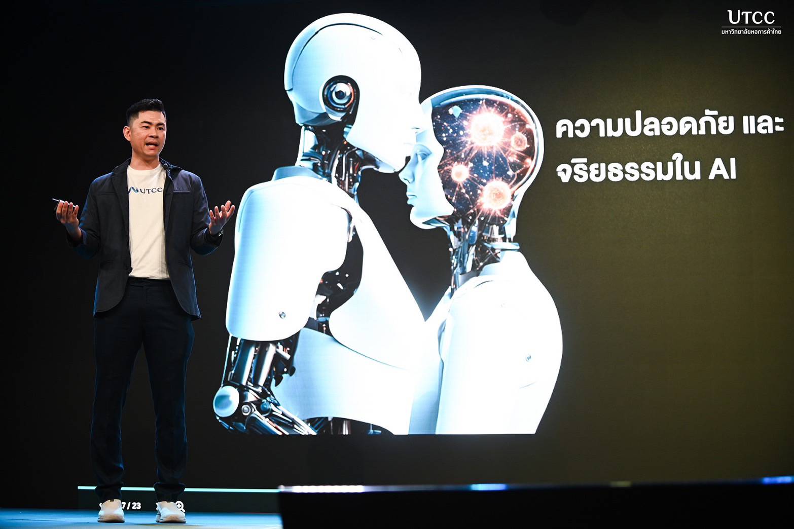 ดร.ชัชชัย หวังวิวัฒนา, UTCC AI Master และผู้ช่วยอธิการบดีฝ่ายเทคโนโลยีสารสนเทศ กล่าวในการบรรยายพิเศษหัวข้อ Building AI workforce for the future ว่า มหาวิทยาลัยหอการค้าไทยเป็นผู้นำด้านการเรียนการสอนทางด้านดิจิทัลมาอย่างต่อเนื่อง ปัจจุบันเรายังคงเน้นย้ำเรื่องของการความเป็นผู้นำทางด้านดิจิทัลอยู่เสมอ เช่น การมอบ iPad พร้อมเครื่องมือทาง AI เช่น Canva Pro และ Chatbot สำหรับวิเคราะห์ YouTube และฝึกภาษาอังกฤษให้กับนักศึกษา ติดตั้งห้องเรียนอัจฉริยะ 65 ห้อง เปิดโอกาสให้นักศึกษาเข้าถึงบทเรียนได้ตลอดเวลา นอกจากนี้ ยังอยู่ระหว่างการพัฒนาระบบ "หอคอยน์" (UTCC Coin) เพื่อส่งเสริมการเรียนรู้และกิจกรรมในมหาวิทยาลัย