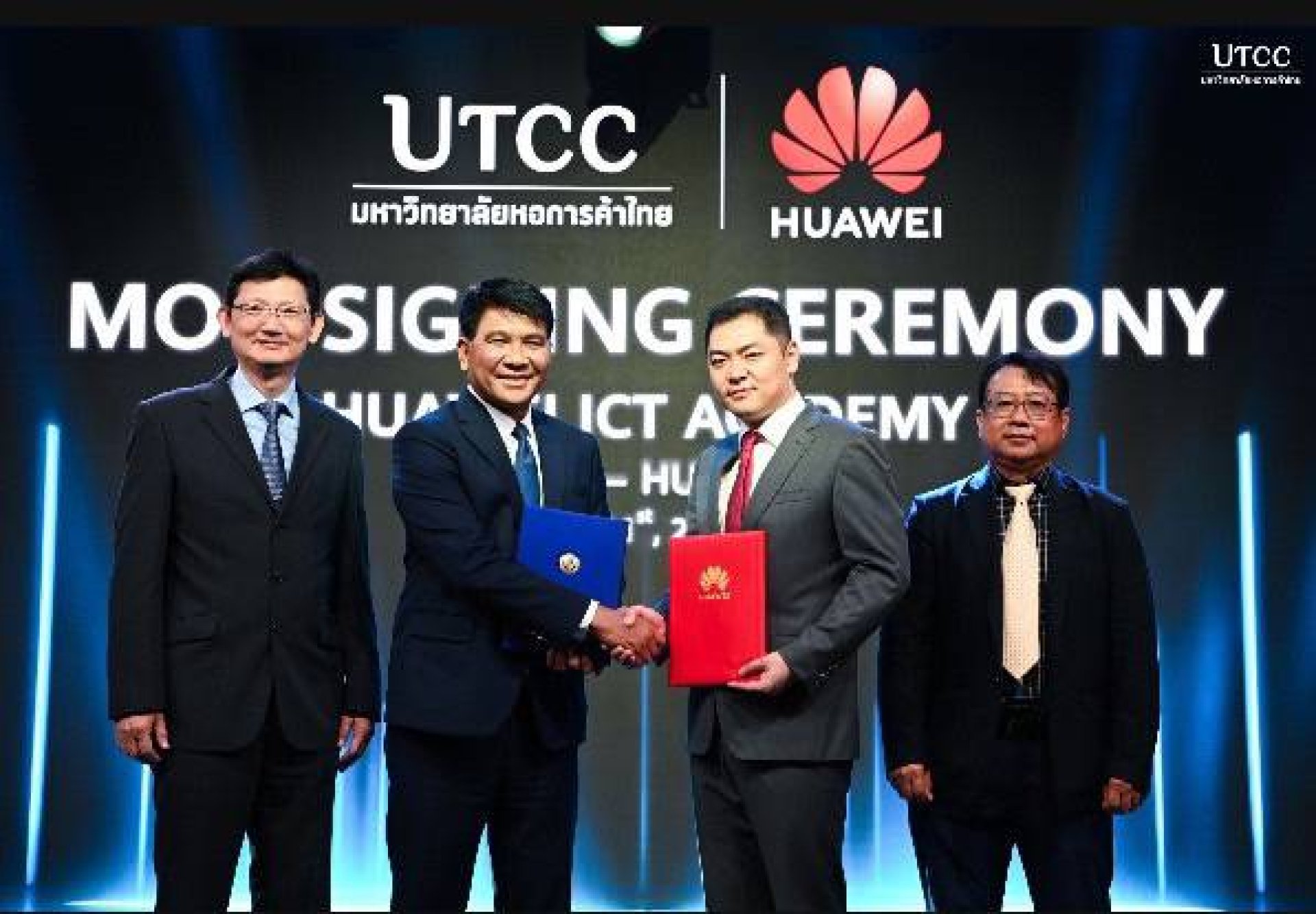 ในโอกาสนี้ หัวเว่ยและมหาวิทยาลัยหอการค้าไทย ยังได้ประกาศลงนามข้อตกลงความร่วมมือในโครงการ Huawei ICT Academy ซึ่งเป็นการทำงานร่วมกันในการพัฒนาความรู้ในด้านของเทคโนโลยีและส่งเสริมการพัฒนานักศึกษาให้มีความรู้ความสามารถในด้านเทคโนโลยีขั้นสูง เตรียมความพร้อมในเทคโนโลยีเฉพาะทาง พร้อมก้าวเข้าสู่สายอาชีพในภาคอุตสาหกรรม