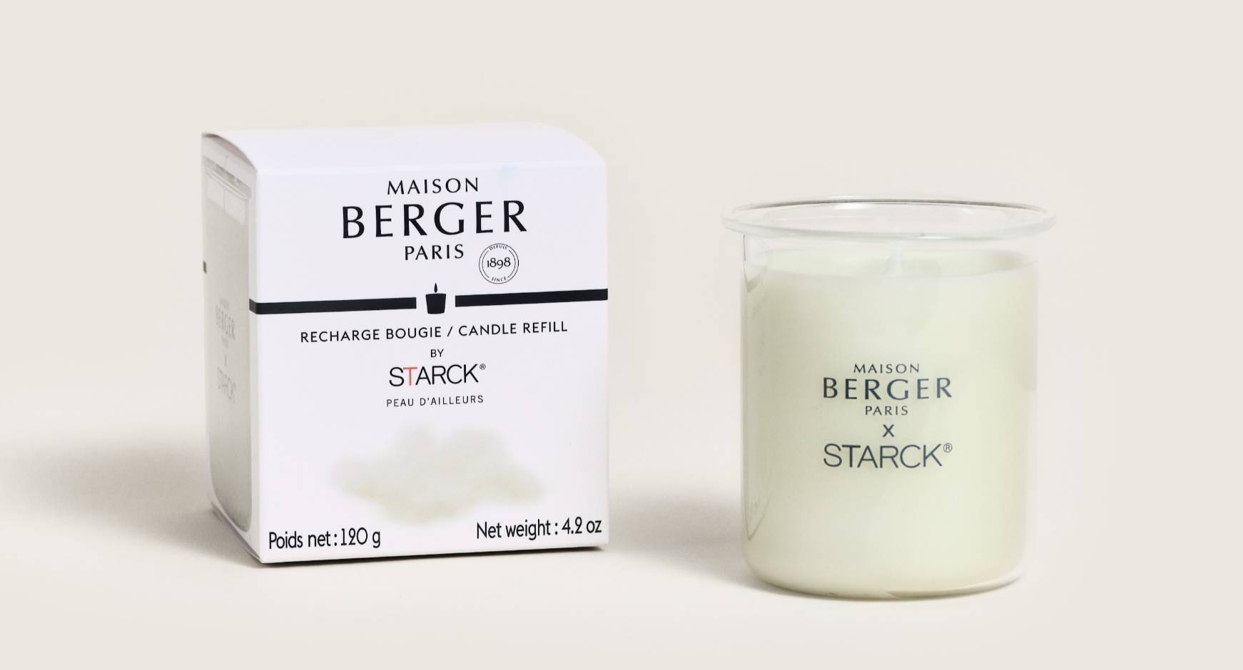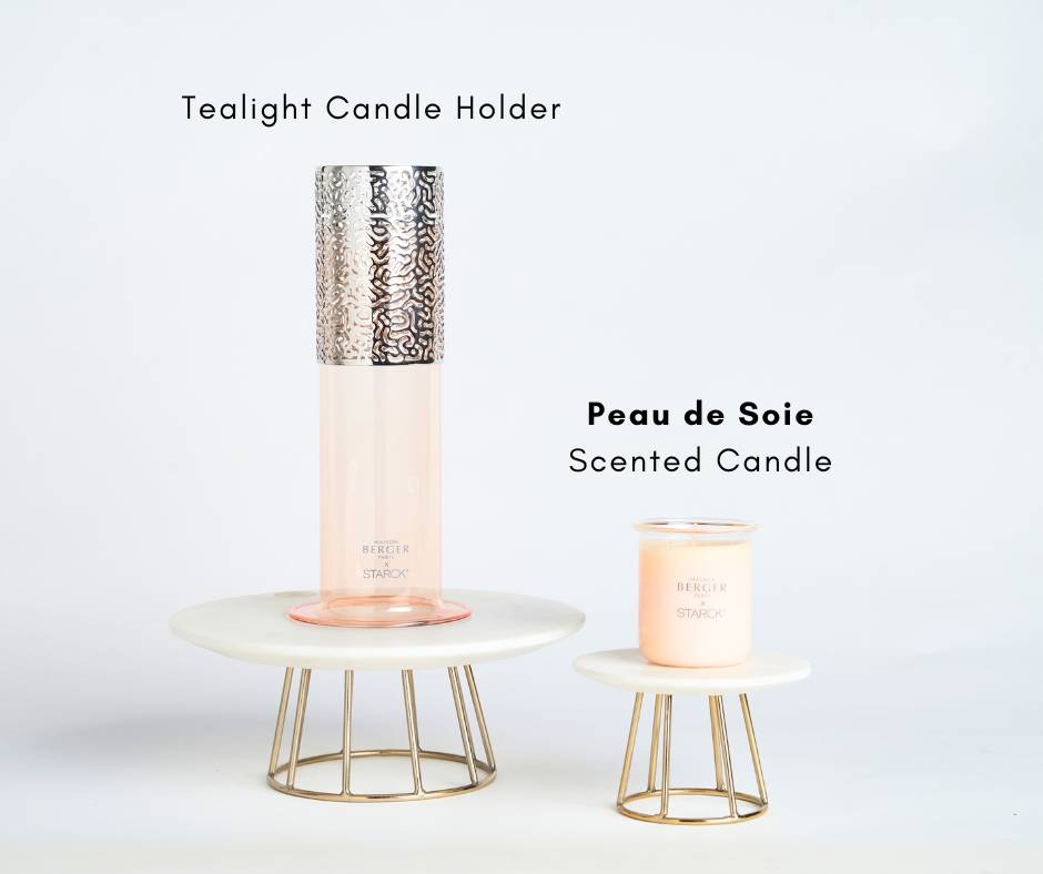 เครื่องหอมบ้าน คอลเลกชัน "Maison Berger Paris x STARCK" จำหน่ายเอ็กซ์คลูซีฟเฉพาะร้าน Maison Berger Paris ชั้น 4 สาขาเซ็นทรัล ชิดลม นำเสนอ เชิงเทียน ผลิตจากแก้วบอโรซิลิเกต มีความทนทาน ออกแบบให้เป็นรูปทรงของหลอดแก้วในทางวิทยาศาสตร์ ครอบด้วยฝาโลหะสีเงินระแนงสะท้อนการเคลื่อนไหวของโมเลกุล ให้ความหรูหราเหนือกาลเวลา มีให้เลือก 3 สี คือ สีเทา สีเขียว และสีชมพู ตัวไส้เทียนสามารถติดตั้งได้ที่ส่วนหัวของเชิงเทียนหรือบริเวณที่มีฝาโลหะครอบ ด้วยความหลงใหลในกลิ่นหอม Philippe Starck ต้องการเผยแพร่มุมมองที่แตกต่างระหว่าง feminine และ masculine ผ่านน้ำหอมที่มีให้เลือก 3 กลิ่น คือ Peau de Soie, Peau de Pierre และ Peau dAilleurs ซึ่งเป็นกลิ่นเดียวกับน้ำหอมฉีดตัวที่ออกแบบโดย Philippe Starck ตัวเทียนมีระยะเวลาในการเผาไหม้ที่ยาวนาน ทำให้สามารถเพลิดเพลินกับกลิ่นหอมที่ชวนหลงใหลได้นานยิ่งขึ้น การกระจายกลิ่นสม่ำเสมอทำให้พื้นที่เต็มไปด้วยกลิ่นหอมที่น่ารื่นรมย์ ไม่ว่าจะต้องการสร้างบรรยากาศที่เงียบสงบในห้องนั่งเล่น เพิ่มความโรแมนติกในห้องนอน หรือเพียงแค่เพลิดเพลินกับช่วงเวลาของความเงียบสงบ