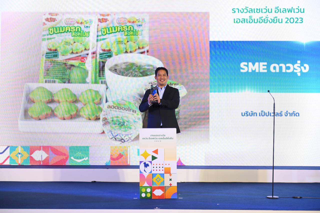 รางวัล SME ดาวรุ่ง จากเวที "เซเว่น อีเลฟเว่น เอสเอ็มอียั่งยืน 2023" ถือเป็นอีกหนึ่งรางวัลระดับประเทศที่ไม่ว่า SME หรือผู้บริโภคต่างจับตามอง เพราะ SME ที่จะผ่านเกณฑ์การตัดสิน จนได้รับรางวัลนี้ได้นั้นจะต้องเป็น SME ที่มีสินค้าใหม่วางจำหน่ายในร้านเซเว่น อีเลฟเว่น 2-3 ปี ได้รับความนิยมจากผู้บริโภคอย่างรวดเร็วและมีอัตราการเติบโตอย่างต่อเนื่อง โดยในปีนี้มี SME ที่ได้รับรางวัล SME ดาวรุ่งสูงถึง 6 ราย
