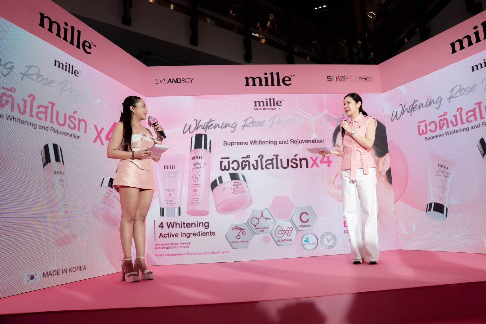 "มิลเล่" กลับมาอย่างยิ่งใหญ่ ตอกย้ำความเป็นแบรนด์ไทยสัญชาติเกาหลี นำ โดย คุณชัญญาพัชญ์ ณัฐจีราวัฒน์ CEO บริษัท มิลเล่ (ไทยแลนด์) จำกัด จัดงานเปิดตัวสินค้าใหม่ "Whitening Skincare With Exosome" เทคโนโลยีวิจัยความงามล่าสุดจากเกาหลีในรูปแบบ Skincare กับ "Mille Whitening Rose Peptide 9 Complex Collection ผิวตึงใสไบร์ทx4" ชูนวัตกรรมใหม่จากเกาหลี สกินแคร์ล้ำสมัยที่มาพร้อม Exosome  เทคโนโลยีวิจัยความงามล่าสุดจากเกาหลี งานจัดขึ้น ณ Eveandboy สาขา The Underground Siam Square One ชั้น LG (Flagship)