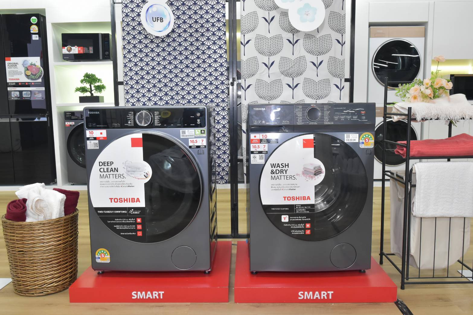 สำหรับเครื่องซักอบผ้า รุ่น TWD-T21BU115UWT(MG) ความจุซัก 10.5 กิโลกรัม และอบ 7 กิโลกรัม ตัวถังขนาดใหญ่ 510 มิลลิเมตร ทำให้แรงในการปั่นผ้ามากขึ้น ผ้ายับน้อยลง นอกจากถังใหญ่แล้ว ช่องใส่ผ้ายังกว้างถึง 330 มิลลิเมตร ช่วยให้ใส่ผ้านวมสะดวกมากขึ้น และสามารถมอนิเตอร์การทำงานผ่านมือถือได้ ดูโปรแกรมการซัก รอบการซักได้ ผ่านแอปพลิเคชัน TSmartLife ส่วนในเรื่องการทำความสะอาด มาพร้อมเทคโนโลยี Ultra Fine Bubble ที่จะปล่อยประจุไฟฟ้า สร้างฟองที่ละเอียดและเล็กกว่าเดิม ช่วยแทรกซึมเข้าสู่เส้นใยผ้า ขจัดคราบได้ดียิ่งขึ้น โดยเฉพาะคราบมัน คราบเหลืองของปกคอเสื้อ ช่วยให้ผ้าเหมือนใหม่อยู่เสมอ และไฮไลท์ที่สำคัญอีกตัวคือ Aroma+ เพราะเราให้ความสำคัญกับเรื่องกลิ่นหอม เราจึงพัฒนาโปรแกรมเพิ่มระยะเวลาการปรับผ้านุ่มให้ยาวขึ้น เพื่อช่วยให้ผ้าหอมยาวนานกว่าปกติ ท้ายสุด มีการดีไซน์วาล์วน้ำเข้าแบบใหม่ ที่ช่วยแก้ปัญหาพื้นที่ที่มีแรงดันน้ำน้อย ให้ยังคงสามารถใช้งานได้