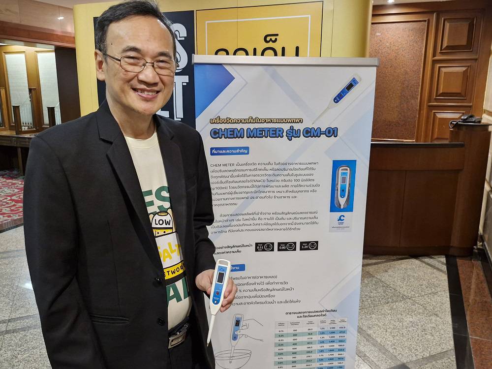 รศ.นพ.สุรศักดิ์ กล่าวต่อว่า การแถลงข่าวในครั้งนี้เนื่องจากกลุ่มนักวิจัยภาควิจัยวิศวกรรมชีวการแพทย์ คณะวิศวกรรมศาสตร์ มหาวิทยาลัยมหิดล ได้ตระหนักถึงความสำคัญของการลดบริโภคเค็ม เพื่อช่วยให้คนไทยลดความเสี่ยงจากการเกิดโรคต่างๆ โดยปัจจัยที่สำคัญอย่างหนึ่งที่ช่วยลดการบริโภคเค็มคือ การปรับพฤติกรรมการกิน โดยลดการทานเค็มและปรับเปลี่ยนอาหาร ซึ่งเครื่องตรวจวัดความเค็มในอาหารเป็นอุปกรณ์ที่สามารถช่วยให้ผู้บริโภคทราบเกี่ยวกับปริมาณโซเดียมในอาหาร เพื่อควบคุมการบริโภคเค็มในแต่ละวัน โดยเครื่องวัดความเค็มภายใต้แบรนด์ CHEM METER ซึ่งจะมีความแตกต่างจากเครื่องวัดความเค็มจากต่างประเทศ เพราะมีการพัฒนาให้เหมาะสมกับการตรวจวัดความเค็มในอาหารไทยที่มีค่าเกลือและไขมันสูง