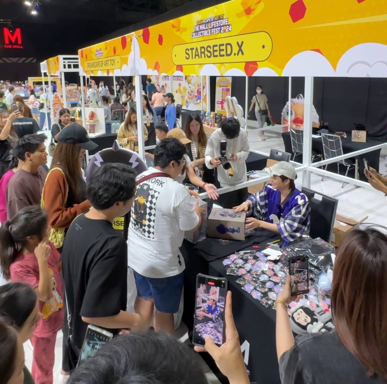"อาร์ตทอยของกอล์ฟ ตอนนี้เดินทางมาถึงตัวที่ 3 แล้วครับชื่อว่าตัว Power ลุ้นมากครับ เพราะตั้งใจเอามาให้ทันจำหน่ายในงานดิสเพลย์ที่เพิ่งผ่านไป แล้วก็มาทันและขายหมดหลังจากเปิดขายไม่กี่วัน ต้องขอบคุณทุกคนมากๆครับ ที่สนับสนุนผลงานของกอล์ฟ บางคนมาต่อคิวซื้อกันตั้งแต่วันแรก บางคนเดินทางมาจากต่างจังหวัด ตั้งใจเดินทางมาเพื่อซื้อผลงานของกอล์ฟโดยเฉพาะเลย กอล์ฟรู้สึกดีใจและขอบคุณมากๆ ครับ ส่วนตัวที่สองก่อนหน้าที่มีชื่อว่า Pain สีดำ เป็นตัวที่ Sold Out ไปตั้งแต่วันแรกที่จำหน่ายเมื่อหลายเดือนก่อน ซึ่งกอล์ฟไม่เคยเล่าที่มาที่ไปเลย เพราะตั้งใจว่าอยากเก็บเรื่องราวนี้จนกว่าขายหมดก่อน ค่อยเล่าที่มาที่ไป ซึ่งตัวนี้กอล์ฟได้แรงบันดาลใจจากแจ็คสันในวันที่กอล์ฟได้มีโอกาสไปดูคอนเสิร์ตน้อง Magicman เมื่อสองปีก่อน ที่แจ็คสันเสียน้ำตาบนเวทีและเล่าเรื่องราวต่างๆ ว่ากว่าที่เค้าจะมาถึงจุดนี้ต้องผ่านเรื่องราวอะไรมาบ้าง และมีน้ำตาไหลๆ สีดำที่ตา เหมือนในการแสดงคอนเสิร์ตของแจ็คสัน กอล์ฟได้แรงบันดาลใจและตั้งใจออกแบบให้ตัว Starseed.X เป็นตัวเค้าที่มีร่องรอยแผลที่ผ่านเรื่องราวต่างๆ มากมาย เป็นสัญลักษณ์ว่าไม่อายที่จะแสดงความเจ็บปวดถ่ายทอดให้คนอื่นเห็น ซึ่งมันตรงกับคอนเซ็ปต์ของ Starseed.X ที่เป็นการปลดปล่อยความรู้สึกหรือตัวตนผ่านสีสันโดยดึง Soul ของมนุษย์คนนั้นออกมา ตอนที่กอล์ฟให้แจ็ค ก็เล่าที่มาที่ไปและน้องก็บอกว่าขายหมดแล้วนี่ ก็ตกใจนิดนึงว่าแจ็ครู้ด้วยว่าขายหมดแล้ว กอล์ฟเลยบอกน้องไปว่าตั้งใจเก็บไว้ให้เค้าตั้งแต่แรกอยู่แล้ว ก็ขอบคุณเค้าที่เรื่องราวของเค้าเป็นแรงบันดาลใจให้เกิดศิลปะในรูปแบบของเรา