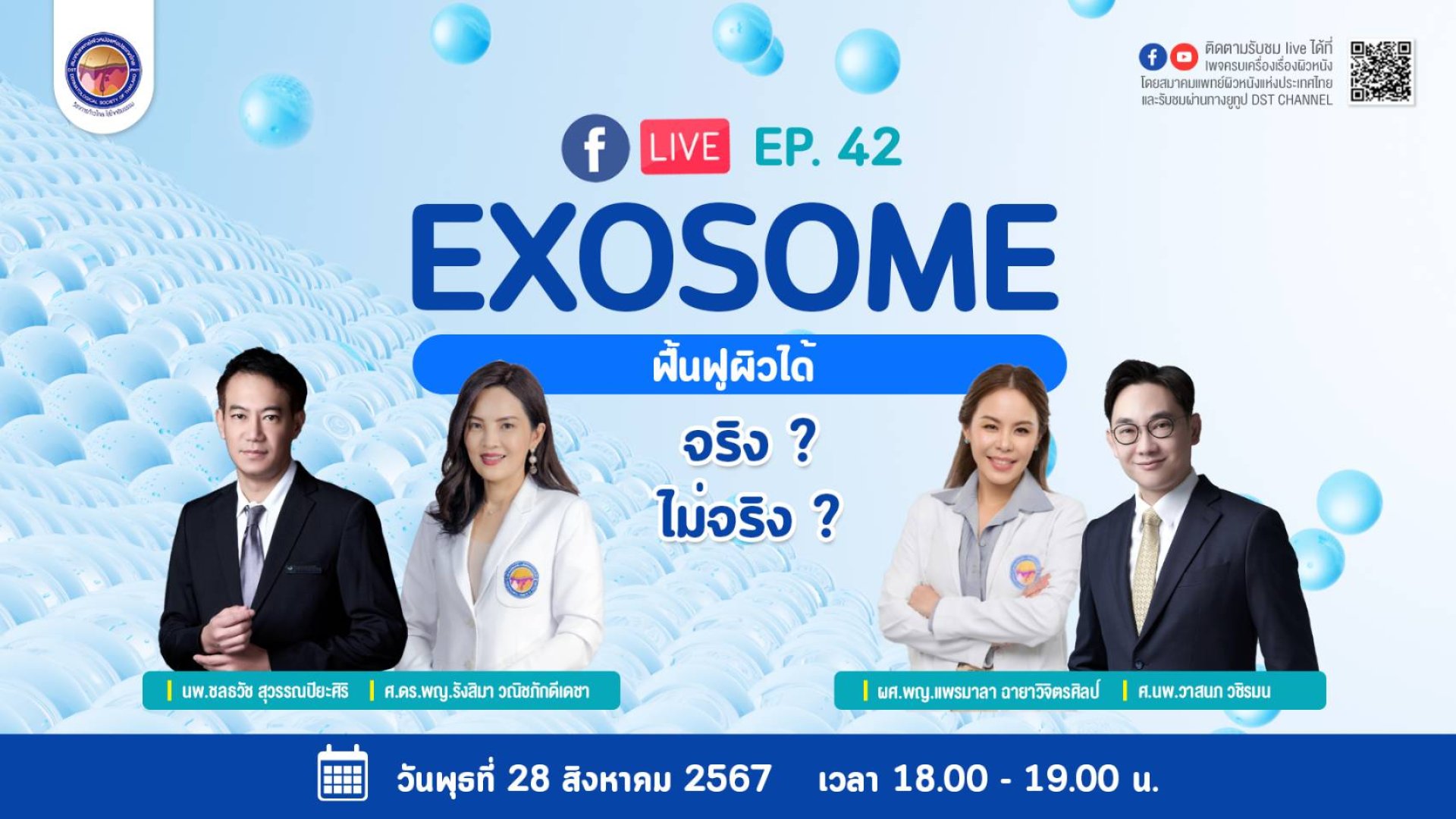 สมาคมแพทย์ผิวหนังฯ เชิญรับชม เพจเฟซบุ๊กไลฟ์ "ครบเครื่องเรื่องผิวหนัง" EP.42 ตอน "Exosome ฟื้นฟูผิวได้จริงหรือไม่?"