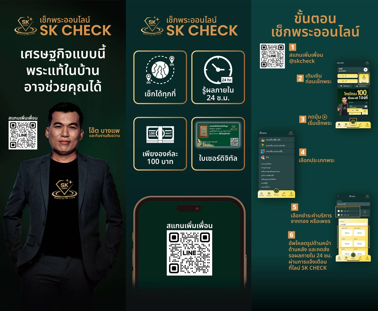 "กลุ่มสันขวานพระเครื่อง" โดยนายอาทิตย์ นวลมีศรี หรือที่รู้จักกันดีในนาม "เซียนโอ๊ต บางแพ" CEO ผู้เปิดตัว "SK Check" เช็กพระออนไลน์ เพื่อให้ประชาชนรู้จักพระเครื่องในบ้านของตัวเองว่ามีค่ากว่าที่คิด และหากขายออกไปจะไม่ถูกหลอก หรือห้อยคอไว้ใช้พุทธคุณก็สบายใจ เมื่อรู้ว่าพระที่มีอยู่เป็นของแท้ โดยการเช็กพระออนไลน์ มีค่าบริการเพียงองค์ละ 100 บาทเท่านั้น ซึ่งสามารถตรวจสอบพระเครื่องได้ง่าย ๆ ทุกที่ทุกเวลาเพียงโหลดรูปพระผ่านไลน์ พร้อมใบรับรองดิจิทัลที่เชื่อถือได้ ซึ่งจะช่วยเสริมความมั่นใจให้กับทุกคนที่มีพระทั่วประเทศ