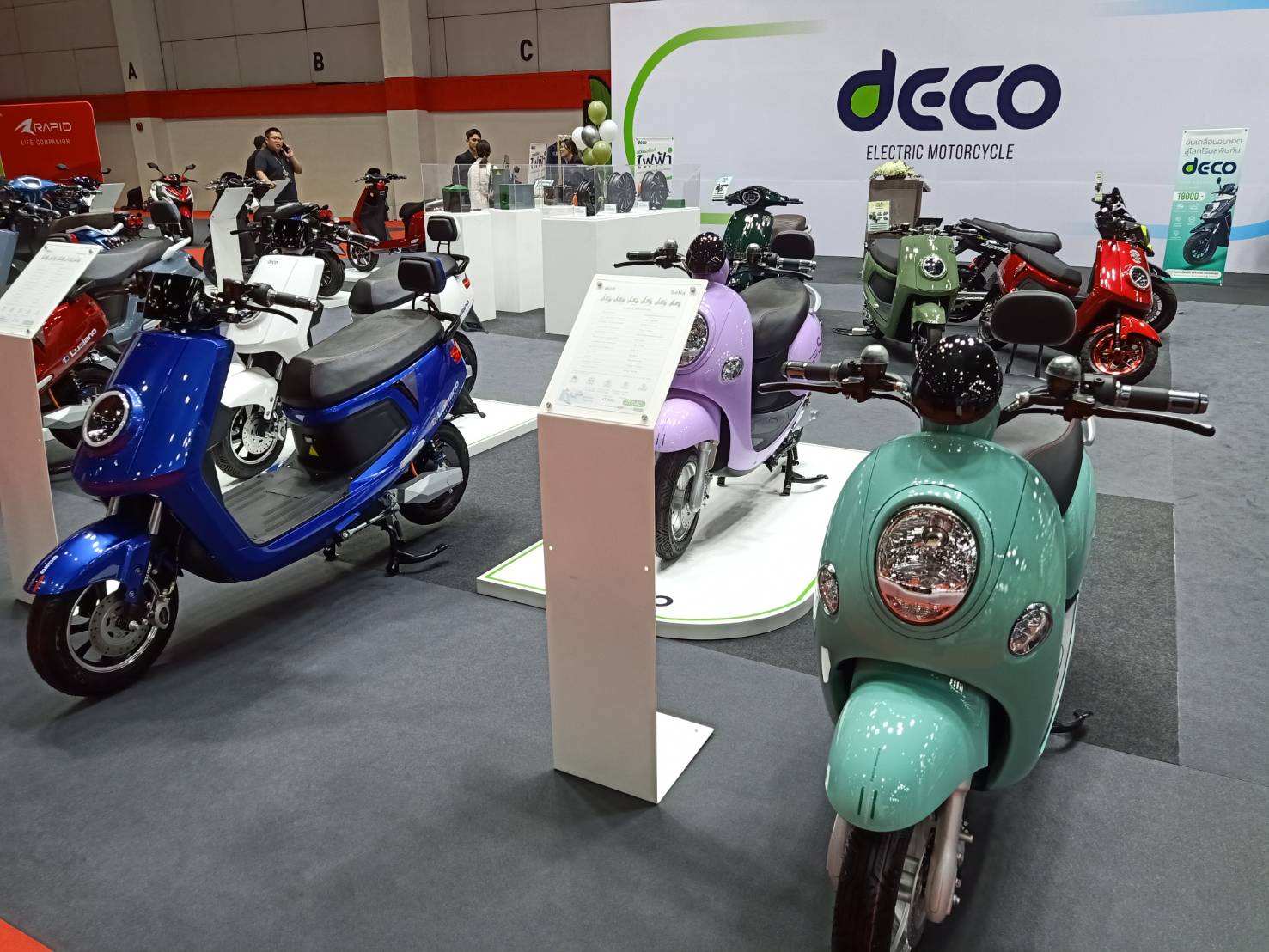 DECO (เดโก้) จัดทัพรถมอเตอร์ไซค์ไฟฟ้า กว่า 8 รุ่น ราคาเริ่มต้น 28,640 บาท บุกงาน "บิ๊กมอเตอร์เซล 2024" (Big Motor Sale 2024) ณ ไบเทค บางนา ฮอลล์ 101-104 บูธ A10 พร้อมรับส่วนลดจากโครงการรัฐฯ EV3.0 18,000 บาท และโปรโมชั่นพิเศษมากมายภายในงาน มั่นใจด้วยฐานการผลิตรถจักรยานยนต์ไฟฟ้าที่ทันสมัยและสามารถรองรับการผลิตได้ 200,000 คันต่อปี ทั้งนี้ยังเผยข่าวดีเรื่องการก่อตั้งโรงงานผลิตแบตเตอรี่ และโรงงานผลิตชิ้นส่วนอิเล็กทรอนิกส์ในประเทศไทยร่วมกับหุ้นส่วนที่เป็นผู้นำในตลาด เสริมสร้างความเชื่อมั่นในคุณภาพของสินค้า ตั้งเป้าขยายตัวแทนจำหน่ายและศูนย์บริการให้ครบ 300 แห่งทั่วประเทศ พร้อมกับ DECO 4S Center (Sale Service Spare-part Survey Center) ตามหัวเมืองแต่ละภูมิภาค เพื่อรองรับการขยายตลาดและส่งเสริมตัวแทนจำหน่ายรอบพื้นที่ แย้มปีหน้าคลอดรุ่นใหม่กว่า 10 รุ่น ครอบคลุมทุกการใช้งานของผู้บริโภค