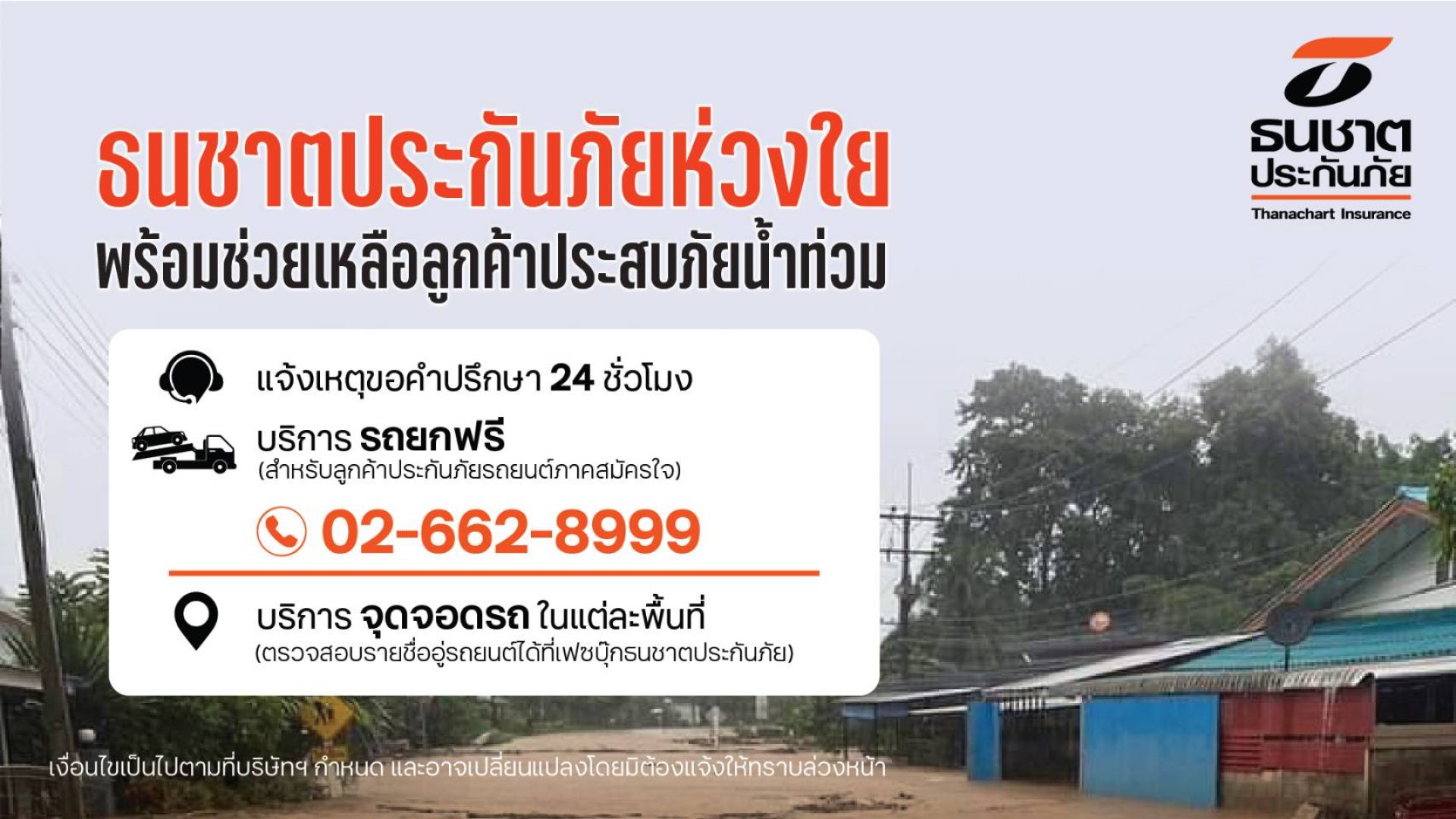 "ธนชาตประกันภัย" ห่วงใยลูกค้าประสบภัยน้ำท่วม "รับแจ้งเหตุ-ให้คำปรึกษาตลอด 24 ชั่วโมง-บริการรถยกฟรี"