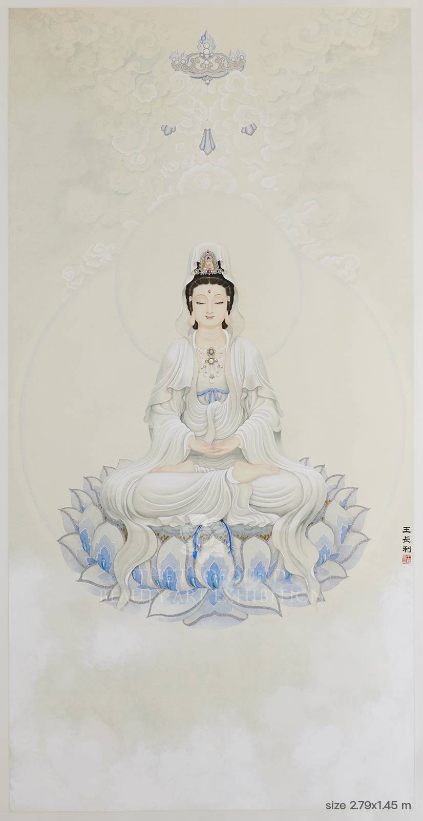 ภาพพระโพธิสัตว์กวนอิมทุกภาพ สร้างสรรค์ชิ้นงานบนกระดาษและสีที่สร้างขึ้นเฉพาะด้วยเคล็ดลับที่จะไม่มีวันถ่ายทอดให้กับผู้ใด ยิ่งไปกว่านั้นด้วยอัจฉริยภาพของศิลปินที่สามารถเขียนภาพพระโพธิสัตว์ให้มีใบหน้างดงามเปี่ยมล้นด้วยกระแสเมตตาและรายละเอียดในองค์ประกอบน้อยใหญ่ ทำให้ผลงานของอาจารย์หวัง ฉางลี่ มีมูลค่าสูงเริ่มต้นตั้งแต่สองล้านเหรียญสหรัฐ ถูกจัดว่าเป็นภาพวาดที่แสดงถึงความรุ่งเรืองในยุคนี้อย่างแท้จริง