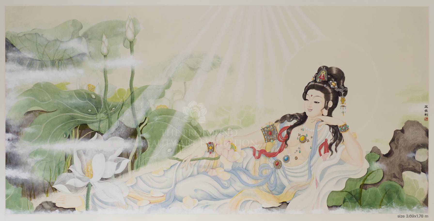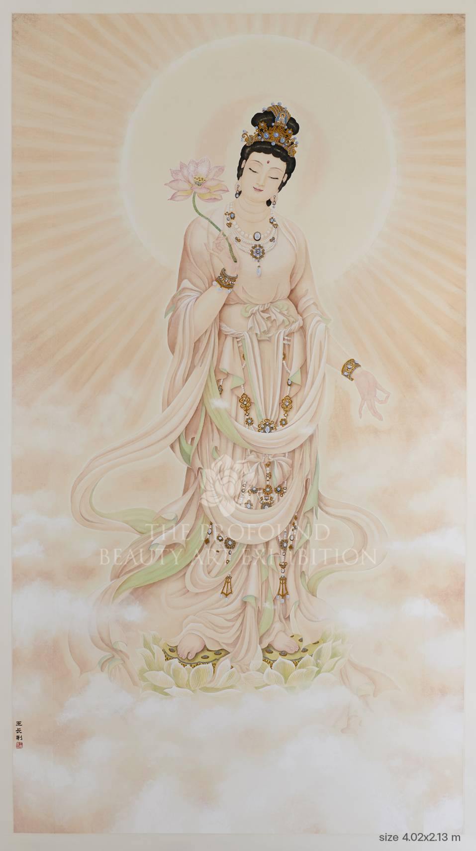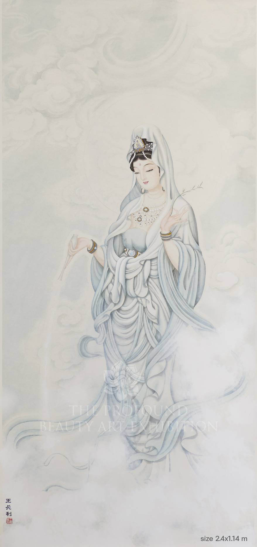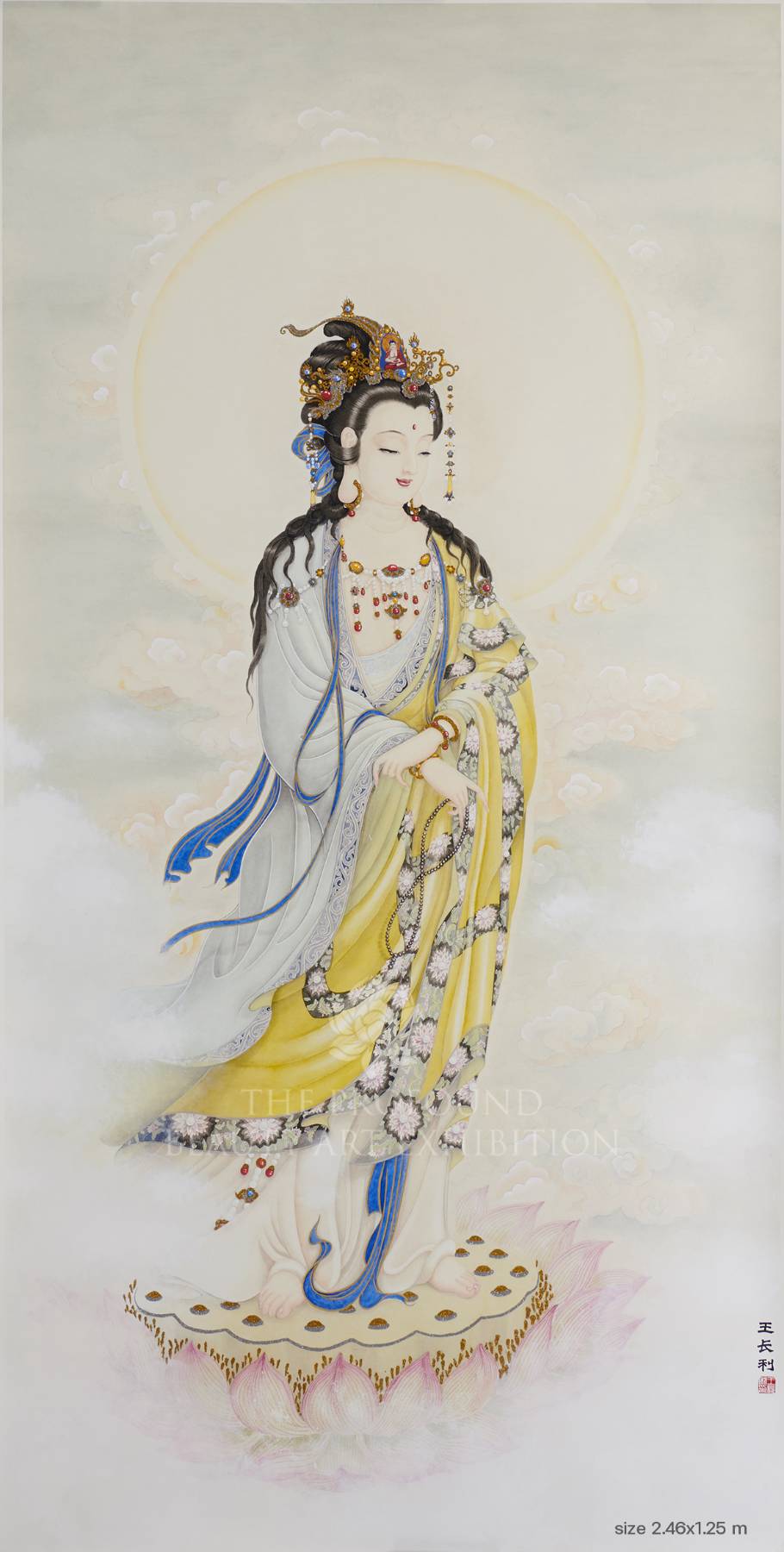 งานนิทรรศการครั้งนี้จึงเสมือนเป็นการสานสัมพันธ์ทางวัฒนธรรมไทย-จีนผ่านงานศิลปะไฟน์อาร์ตชั้นสูง อาจารย์หวัง ฉางลี่ ได้สร้างสรรค์เทคนิคพิเศษเพียงหนึ่งเดียว ทั้งกระดาษและสีที่ทำขึ้นเอง ด้วยเคล็ดลับเฉพาะตัวที่ไม่มีการถ่ายทอดให้แก่ผู้ใด ปณิธานของอาจารย์ที่ตั้งมั่นคือ การวาดภาพพระโพธิสัตว์กวนอิมจำนวนทั้งหมด 33 ปาง ปัจจุบันท่านได้วาดเสร็จแล้วจำนวน 11 ปางด้วยกัน และจะนำมาจัดแสดงให้ทุกท่านเข้าชมในครั้งนี้จำนวนมากถึง 6 ปาง
